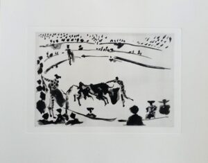 Pablo Picasso, La Tauromaquia, La estocada, edición facsimil limitada a 1.500 ejemplares reproducidos en fototipia por la editorial Gustav Gili, plancha 29×20 cms. y papel 31×39 cms.