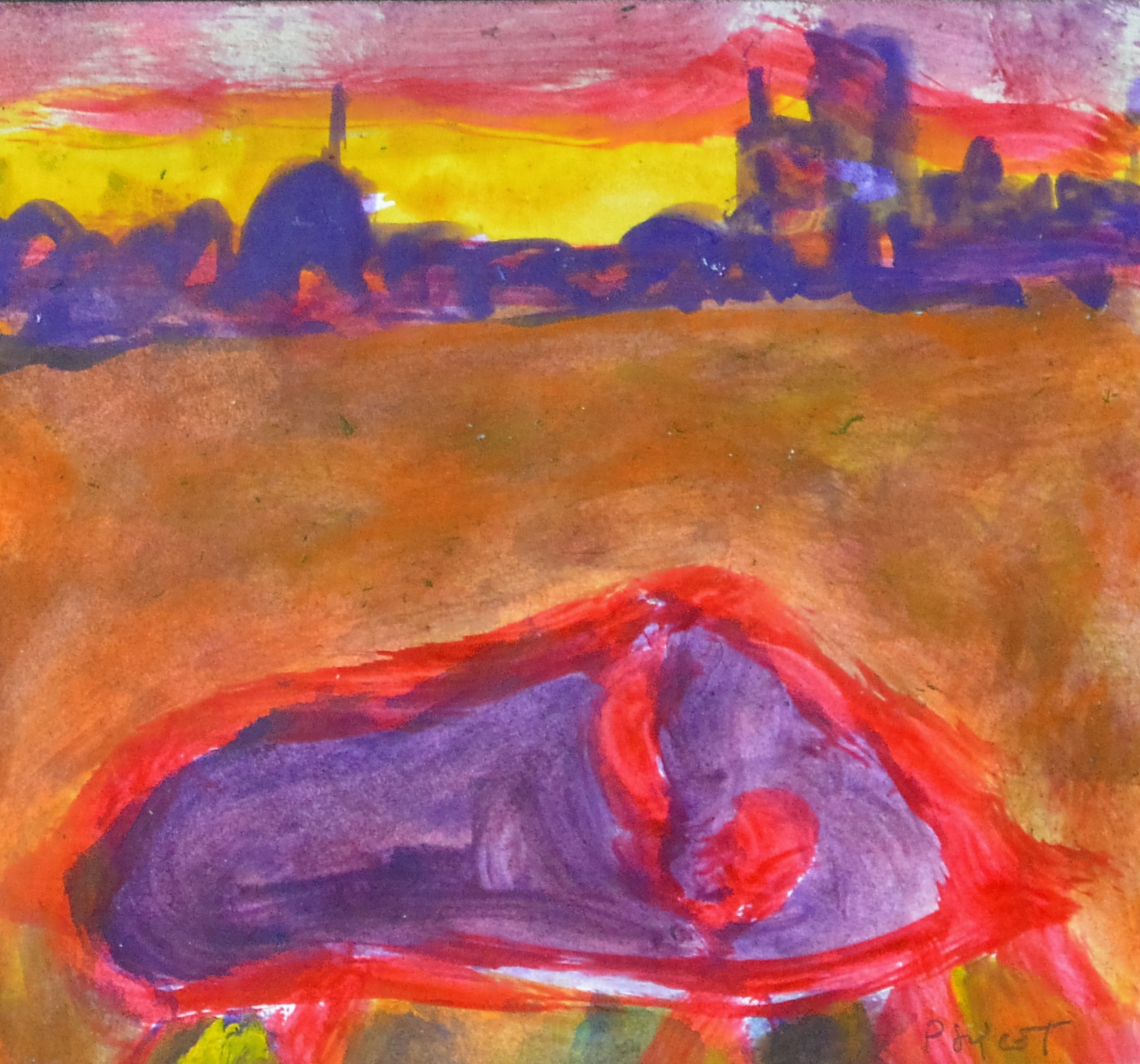 Pablo Sycet, Paisaje, Pintura técnica mixta cartulina, enmarcado, pintura 16×17,50 cms. y marco 28×31 cms. Marco incluido