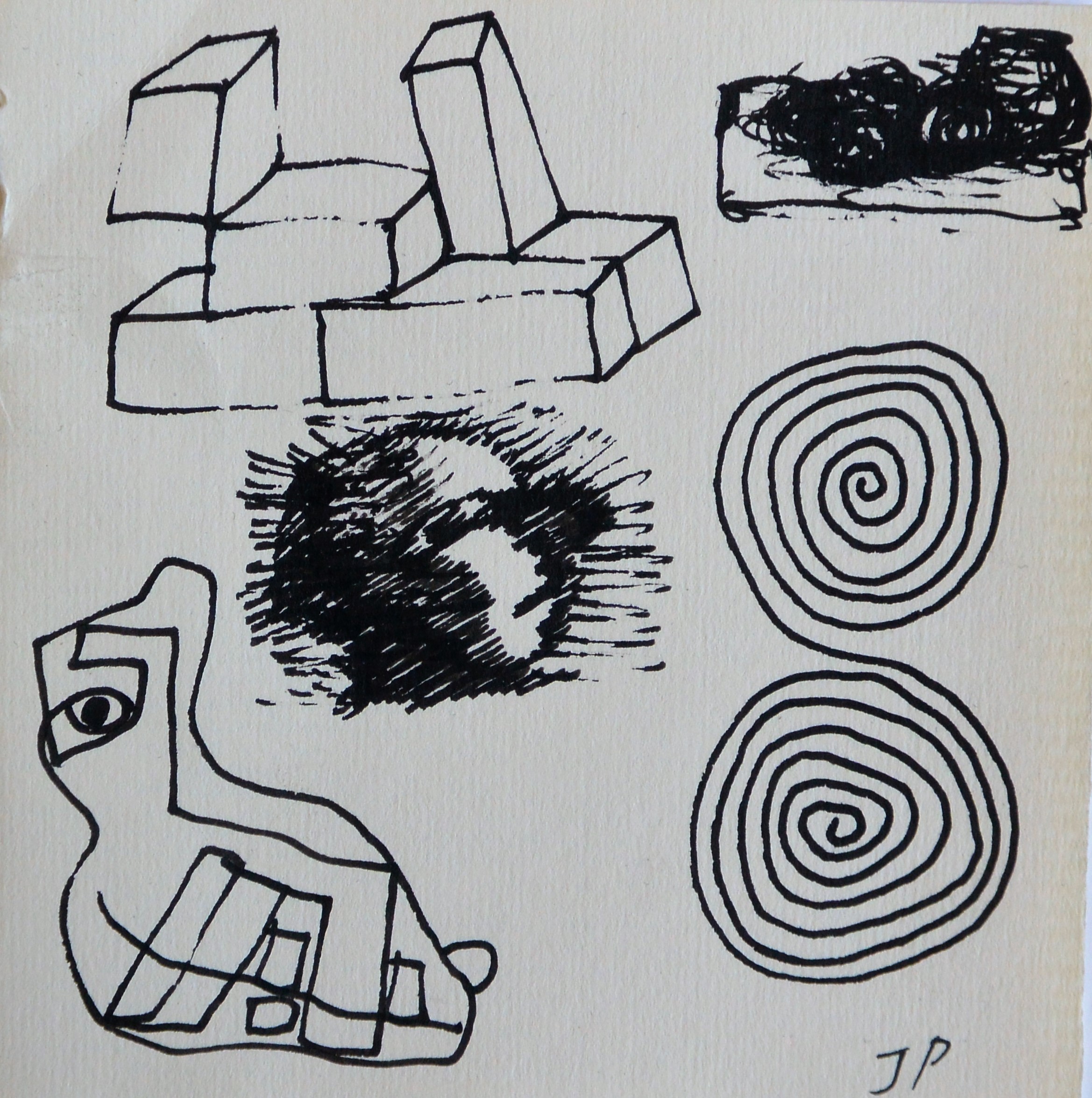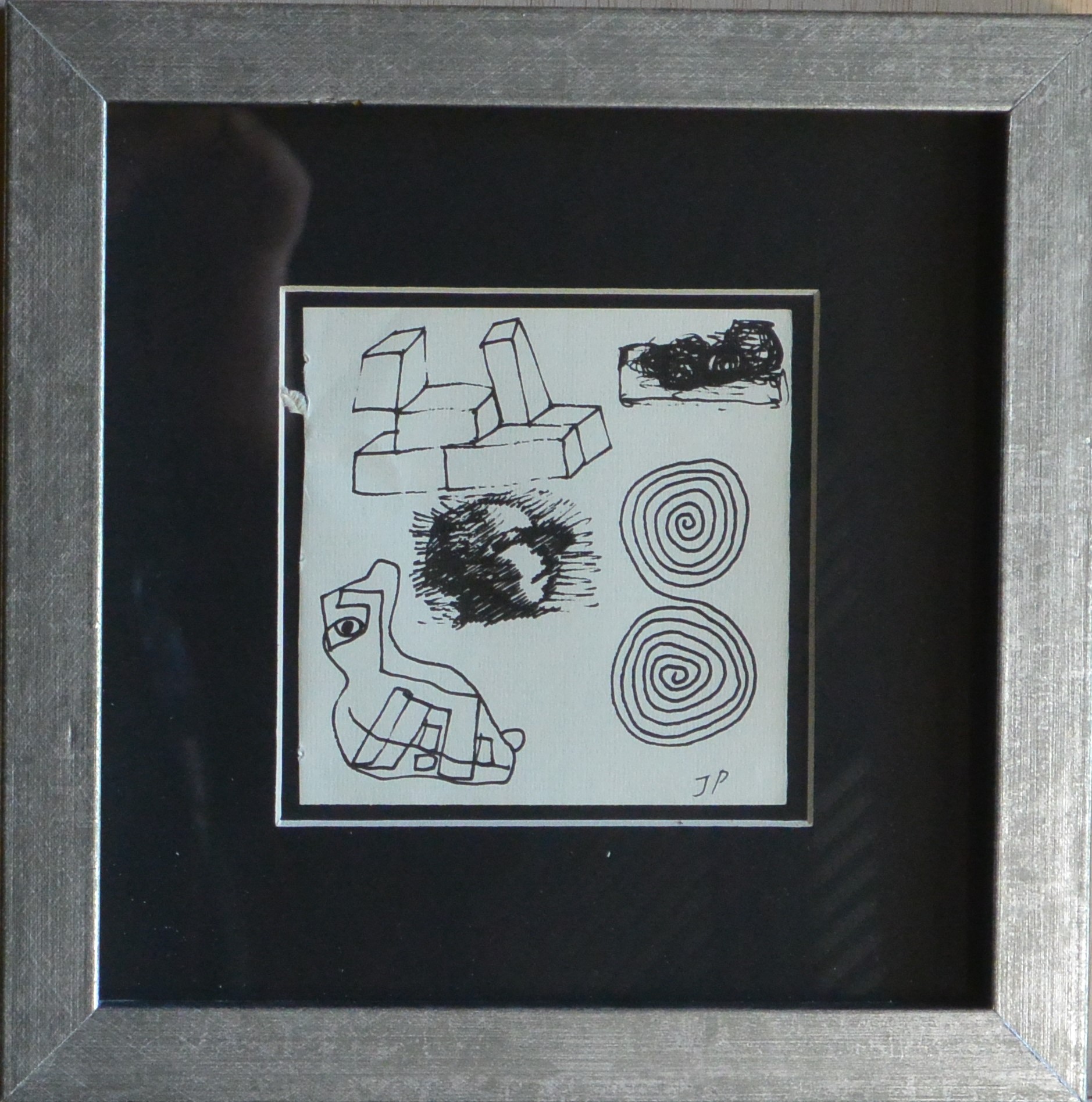 Pagola Javier, Concéntricos, dibujo tinta papel, enmarcado, dibujo 10×10 cms. y marco 22×22 cms. Marco incluido