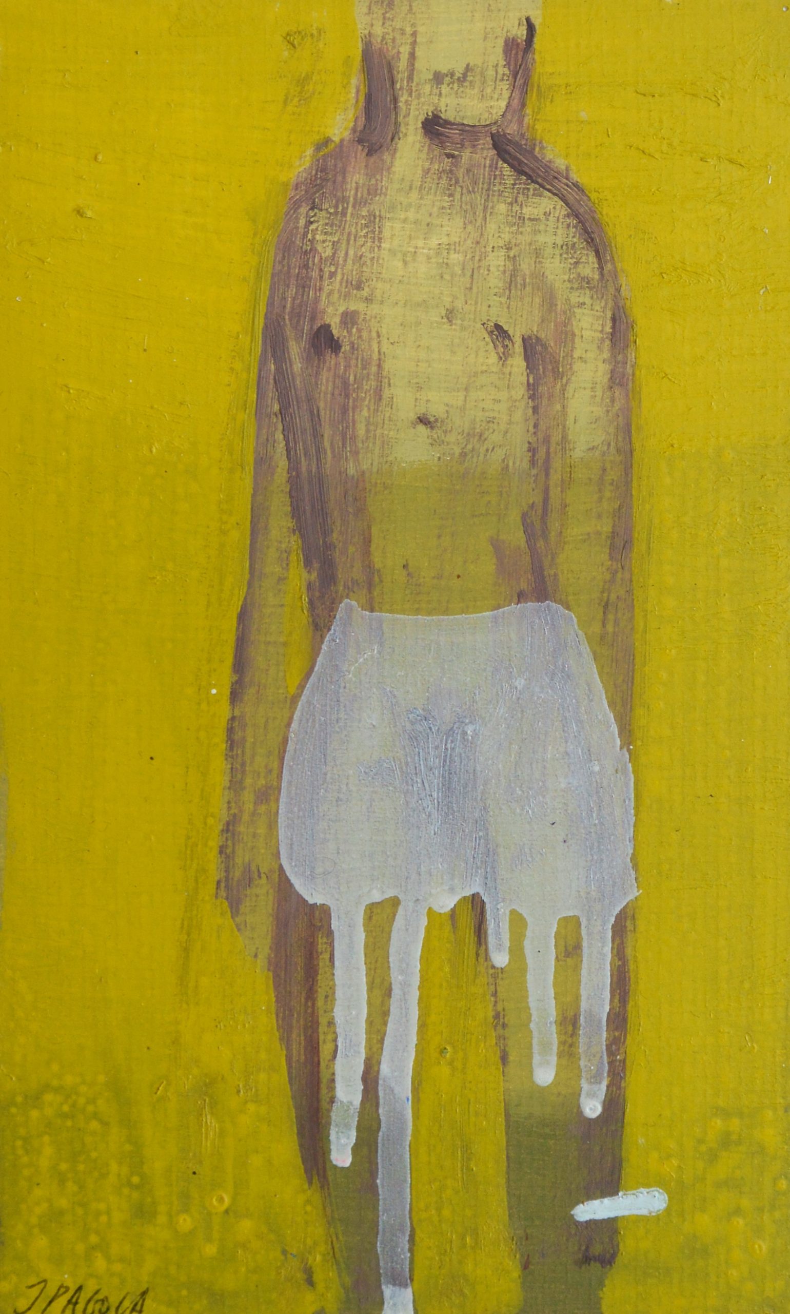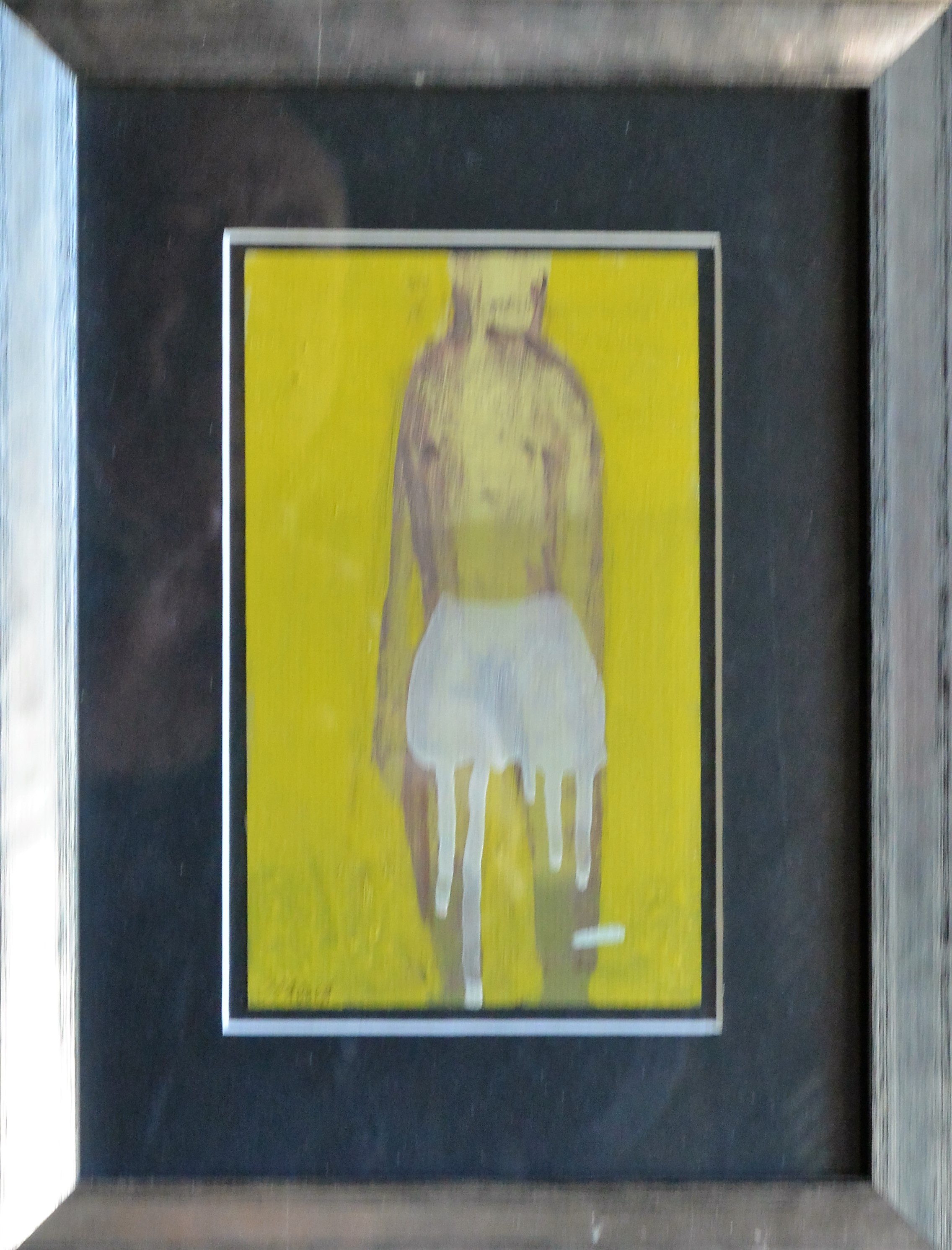 Pagola Javier, Falda blanca, técnica mixta cartulina, enmarcado, pintura 17×10,50 cms. y marco 29×22 cms. Marco incluido