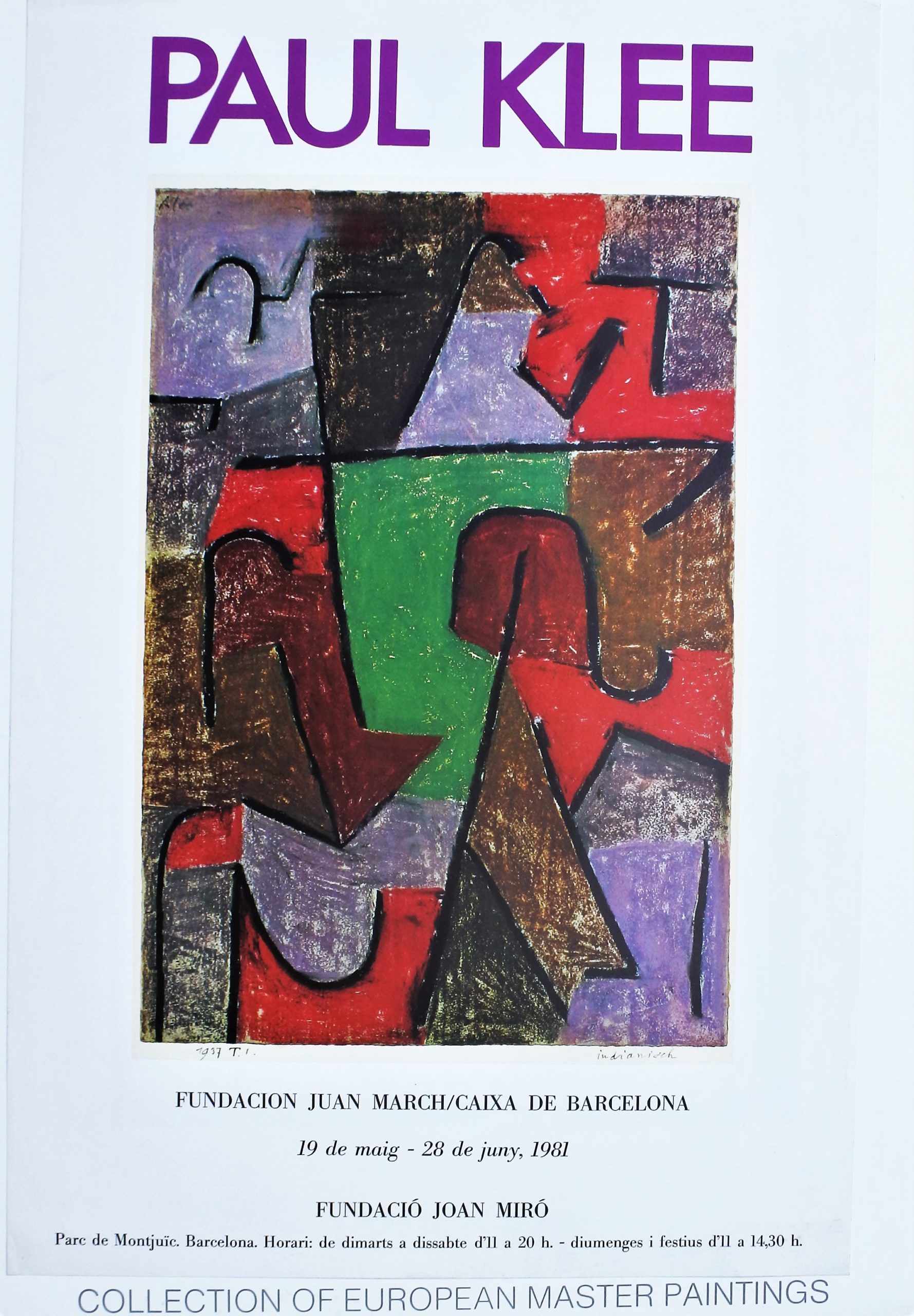Paul Klee, Indianich, cartel original exposición en la Fundación Juan March y Joan Miró en 1.981, 82×54 cms.