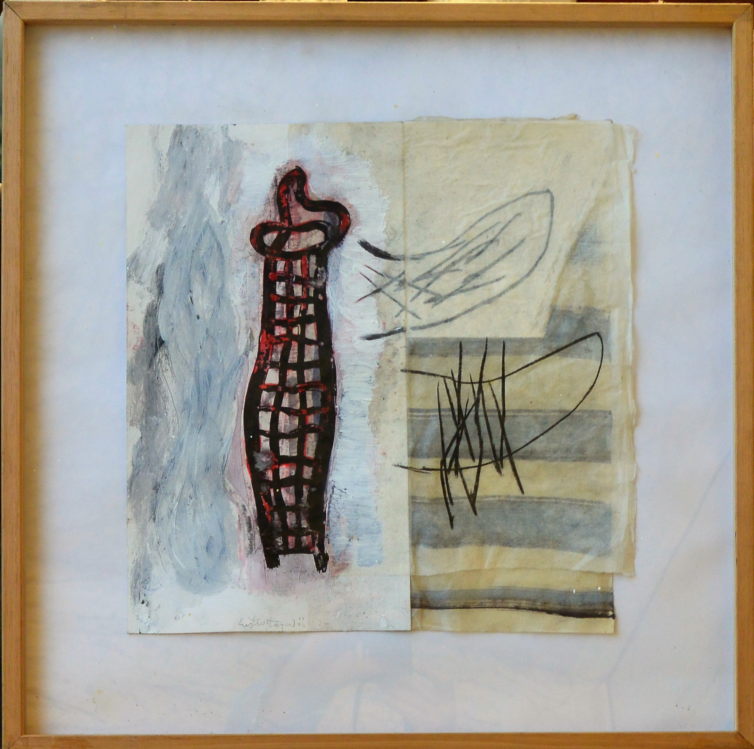 Pedro Castrortega 1994, ademanes, técnica mixta papel, enmarcado, obra 35×35 cms. y marco 51×51 cms.
