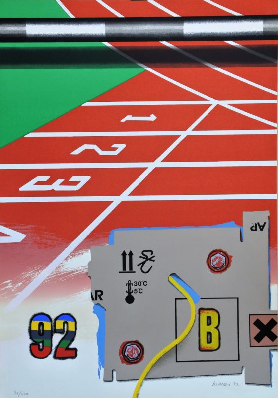 Peter Klasen, J. O. 92, litografía, edición 250 ejemplares, numerado, datado 92 y firmado a lápiz, 90×63 cms.
