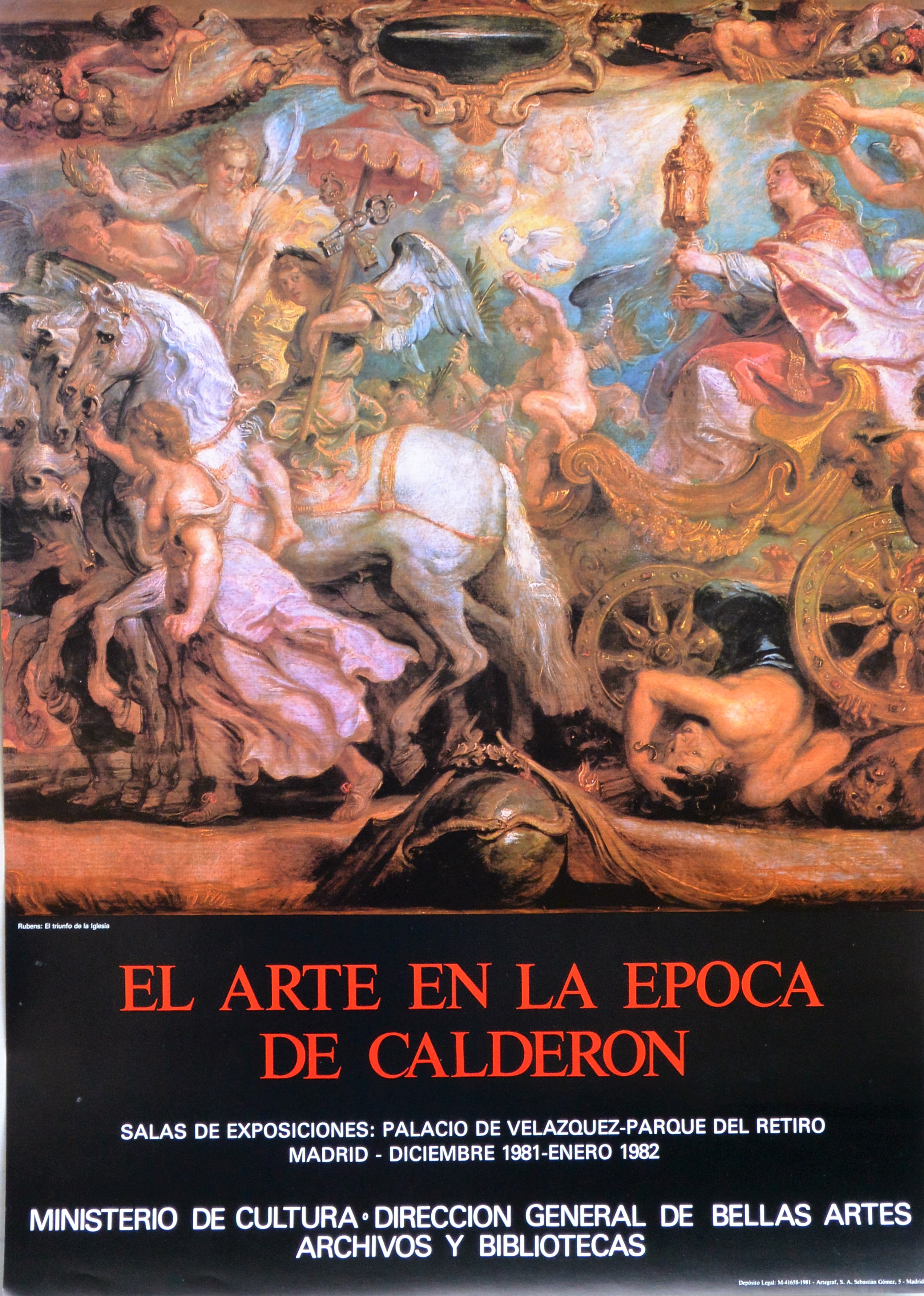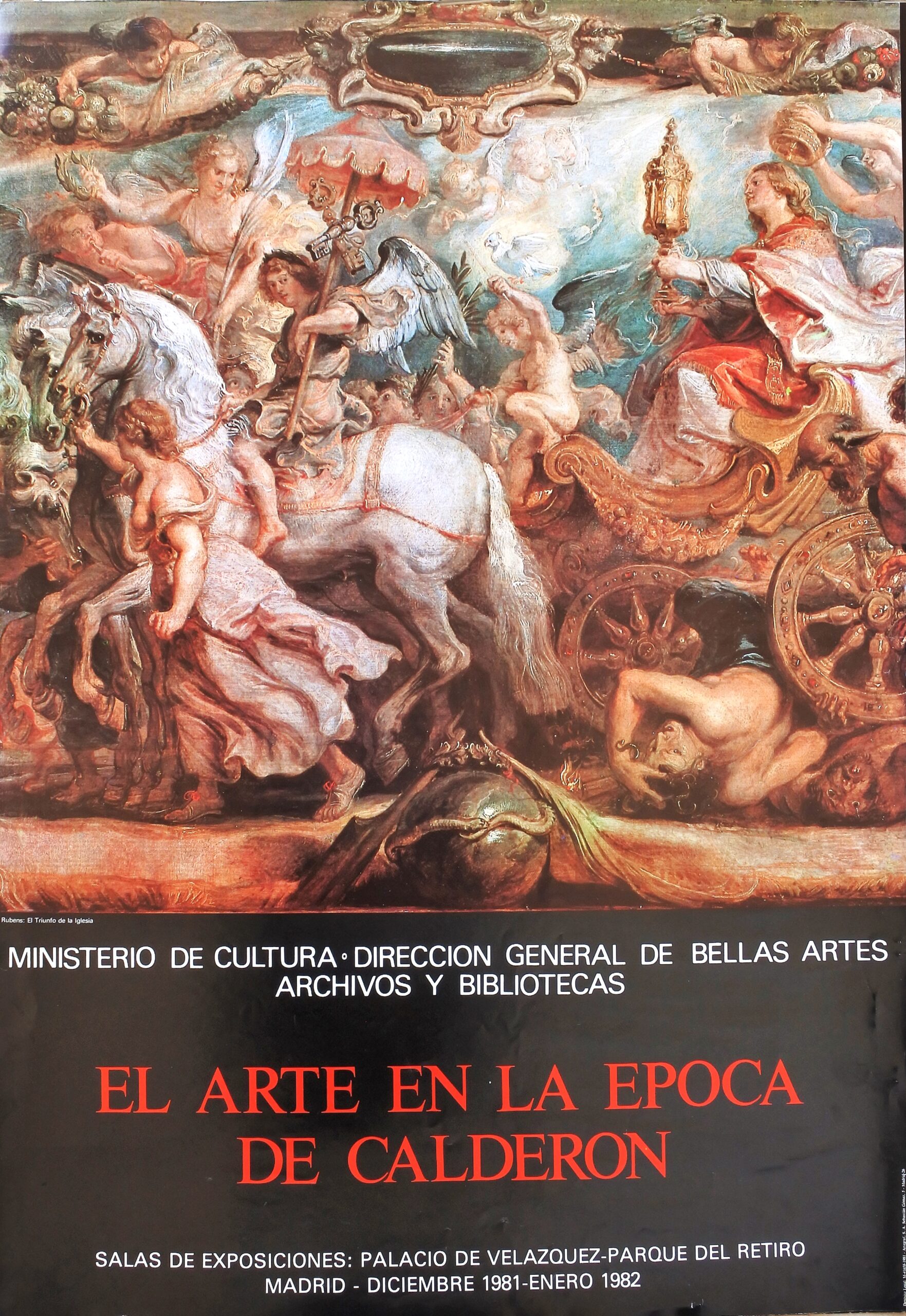 Peter Paul Rubens, El triunfo de la Iglesia, cartel original exposición El arte en la época de Calderón en 1981, 69×49 cms.