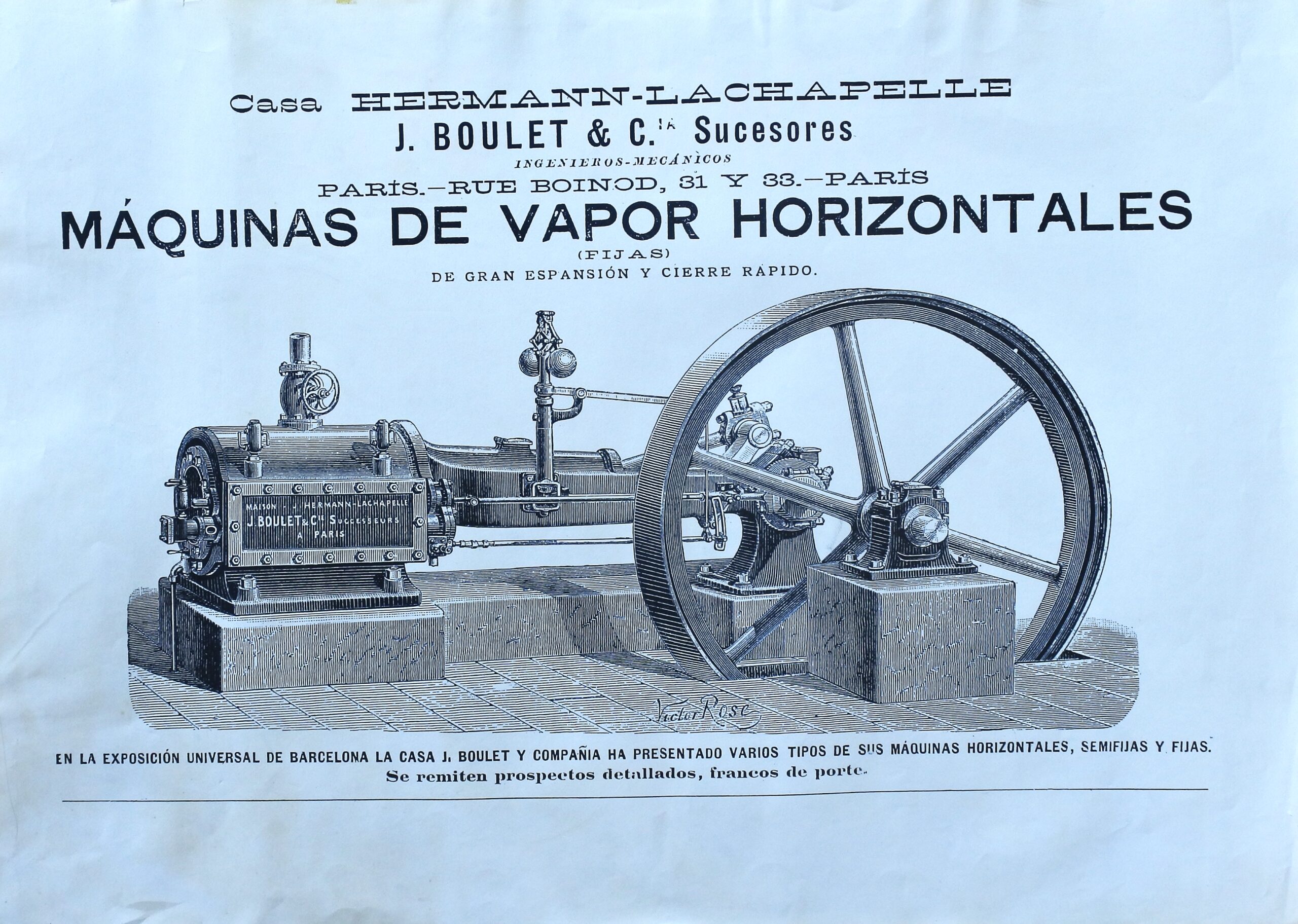 Publicidad, Máquinas de vapor horizontales, cartel antiguo de publicidad, 50×71 cms.