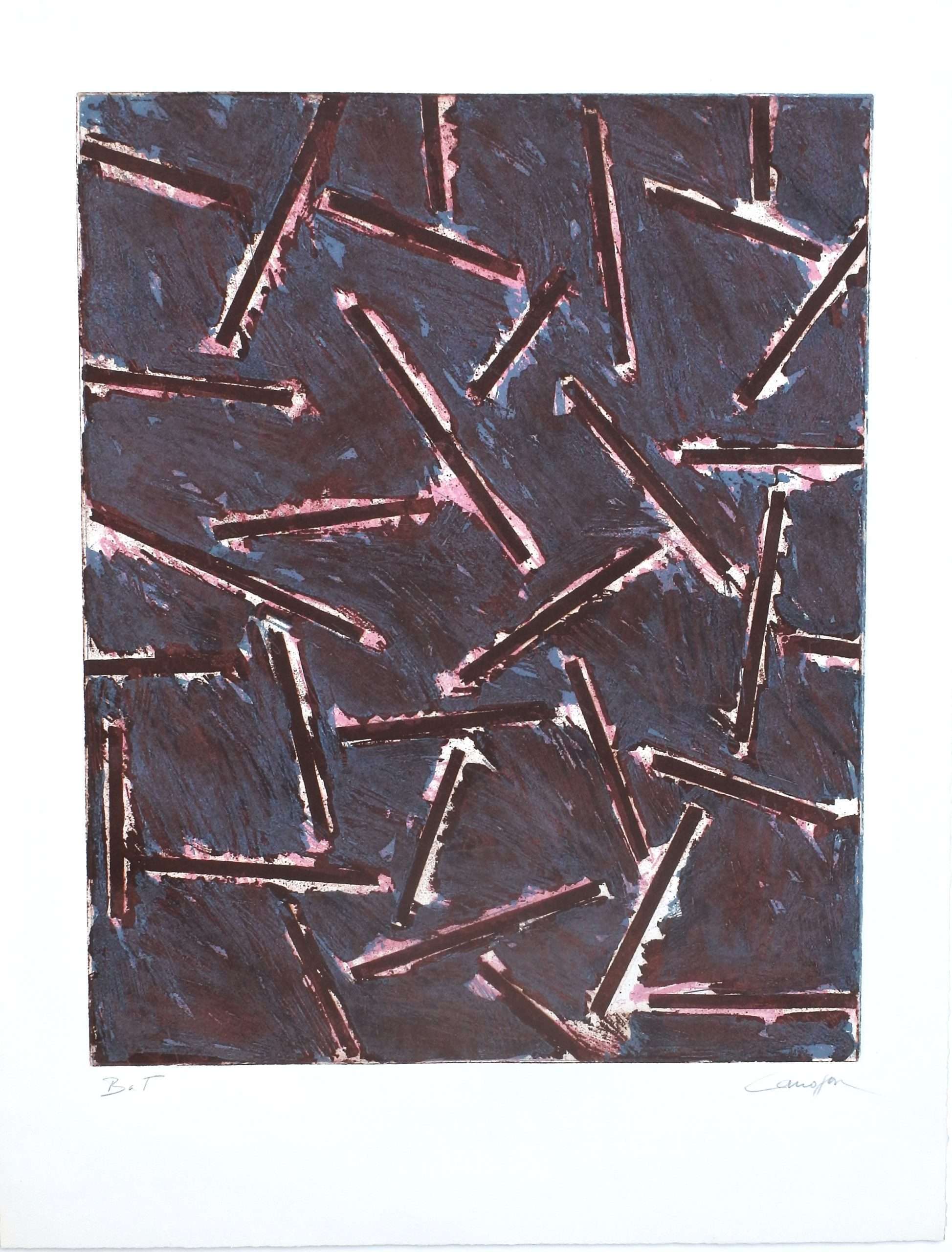 Rafael Canogar 1982, Los Andes VI, grabado aguafuerte, edición 92 ejemplares 500 aniversario Descubrimiento, numerado y firmado a lápiz, plancha 40×39,50 cms. y papel 65×50 cms.