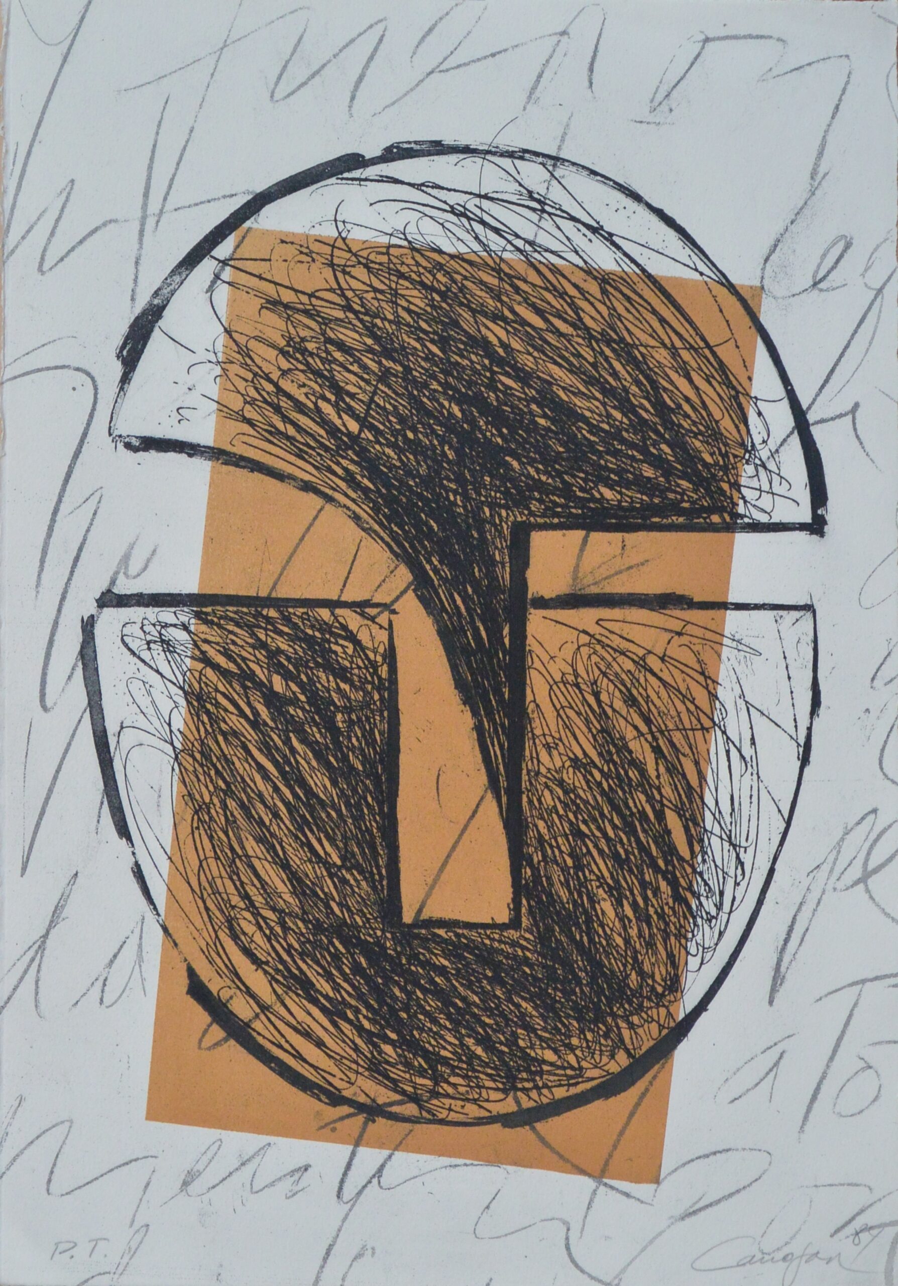 Rafael Canogar 1984, Homenaje a Fray Bartolomé de las Casas I, grabado aguafuerte, edición 113 ejemplares, numerado pt y firmado a lápiz en 1984, 51×35 cms.