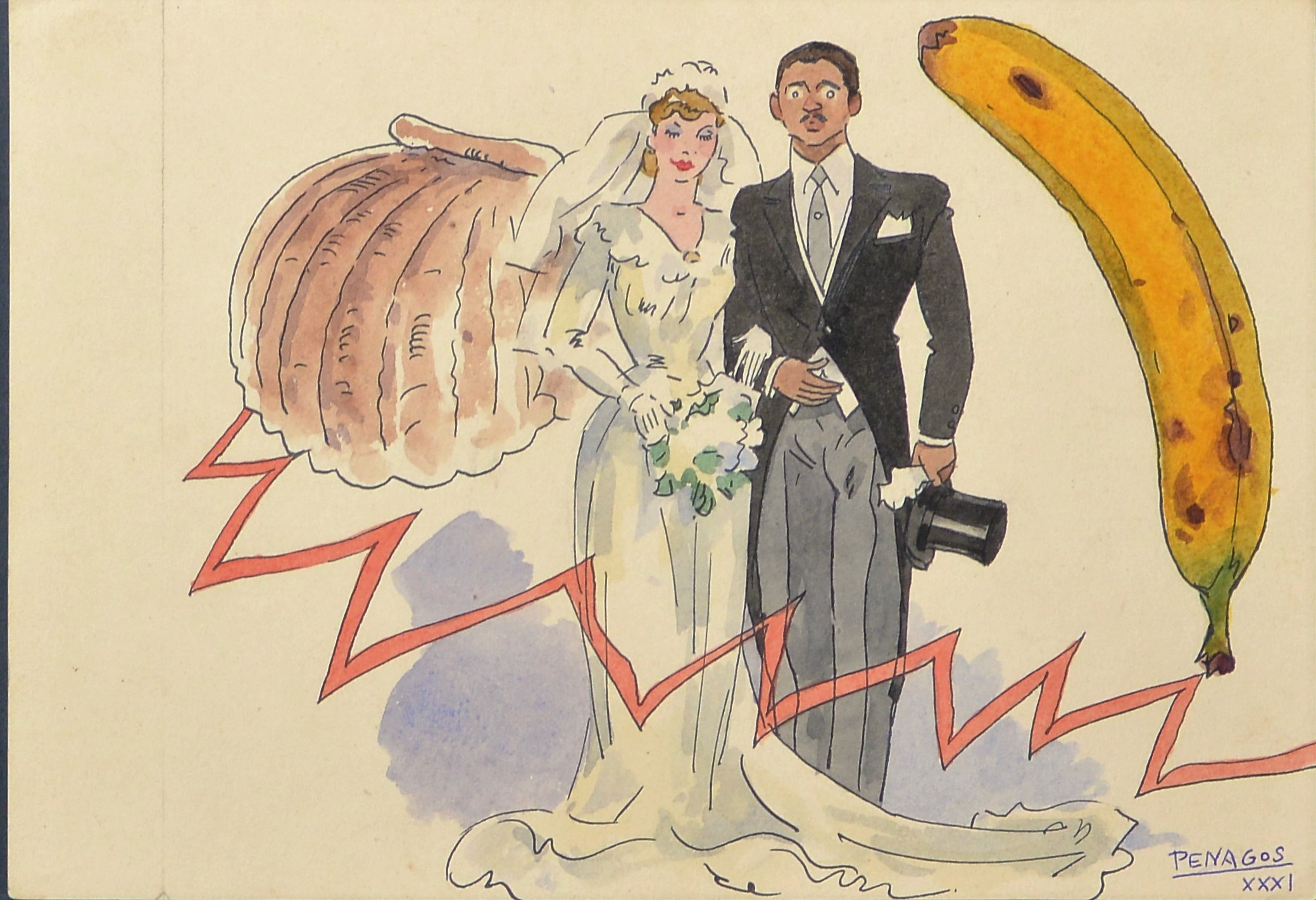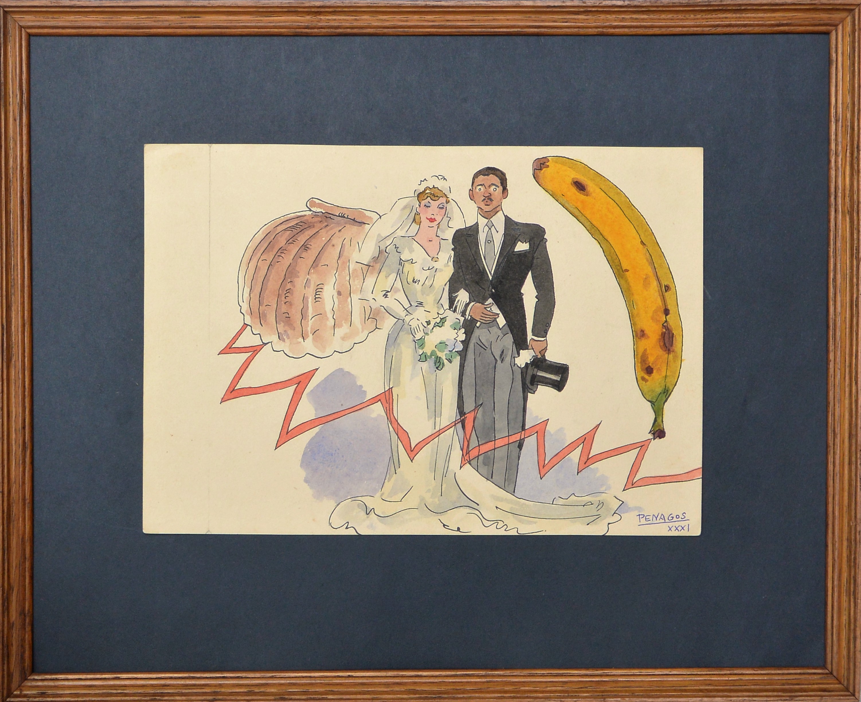 Rafael de Penagos, Los novios,1931, dibujo tinta y acuarela papel, enmarcado, dibujo 18×26 cms. y marco 32,50×40 cms.