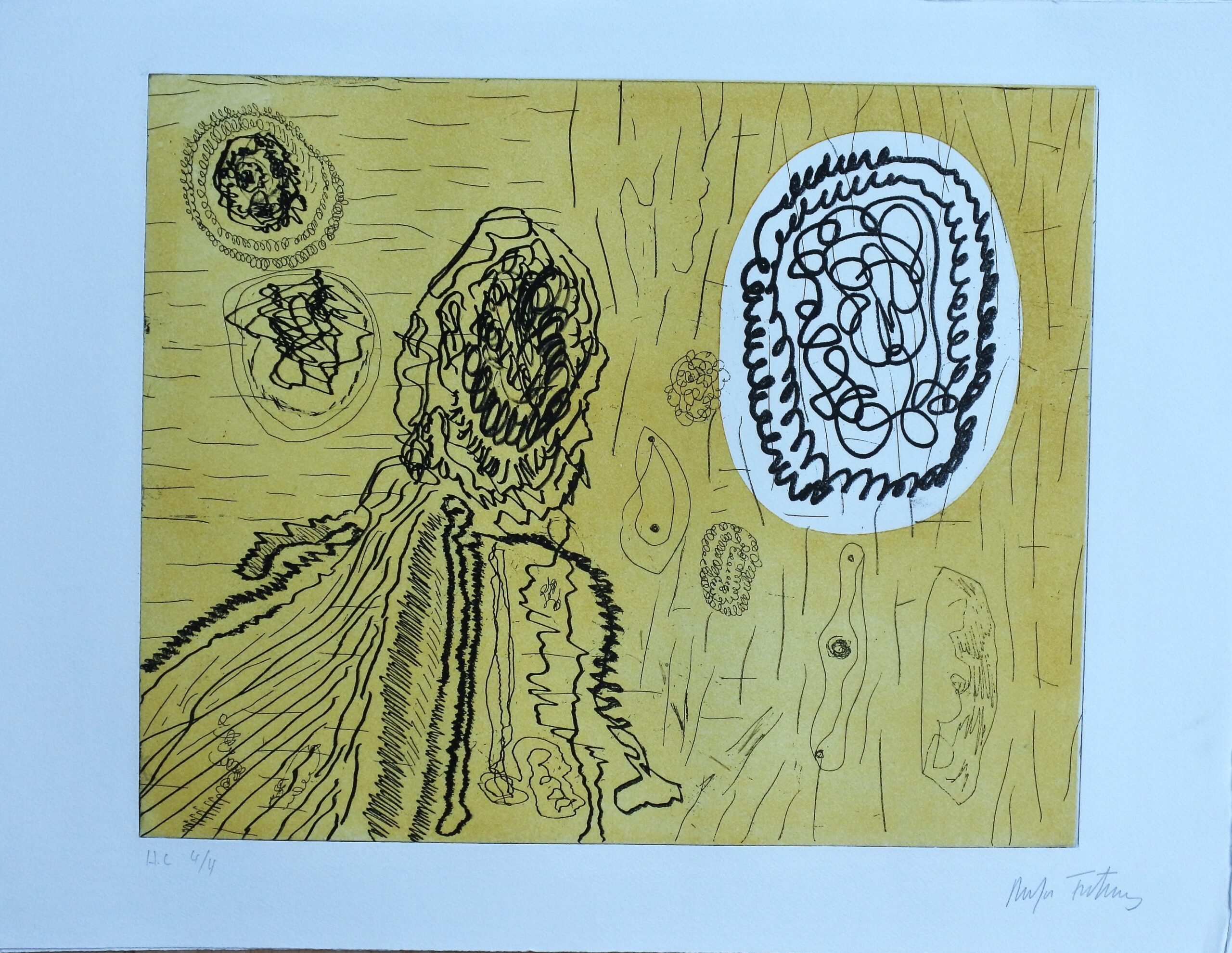 Rafael Forteza, Le Manifeste de la Quatrième Dimension I, grabado aguafuerte y collage, edición 24 ejemplares, numerado y firmado a lápiz, plancha 40×49 cms. y papal 50×66 cms.