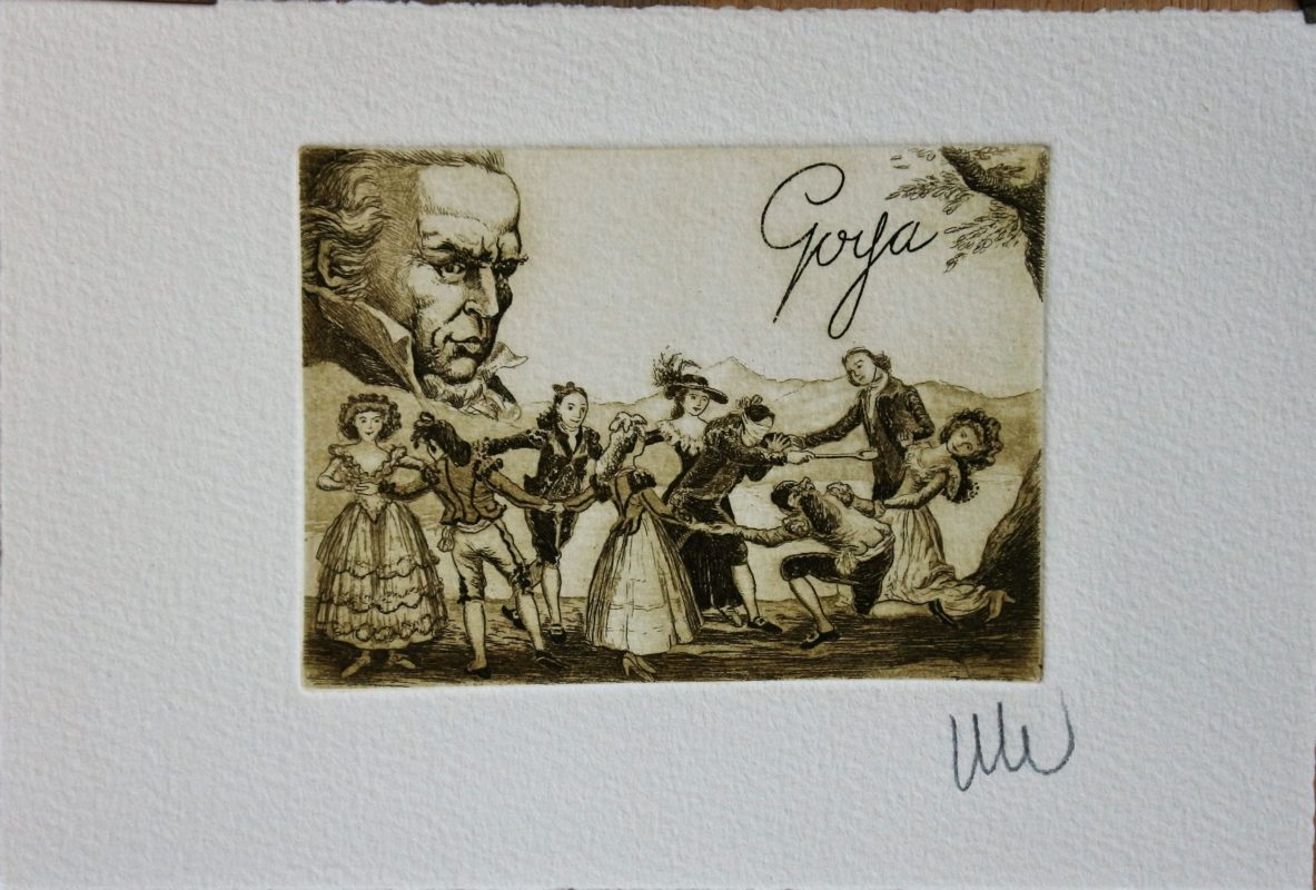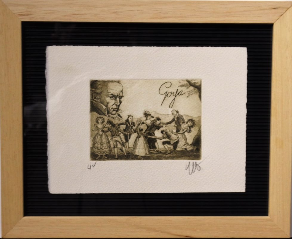 Ramiro Undabeytia – «Goya y la gallina ciega» grabado aguafuerte, enmarcado