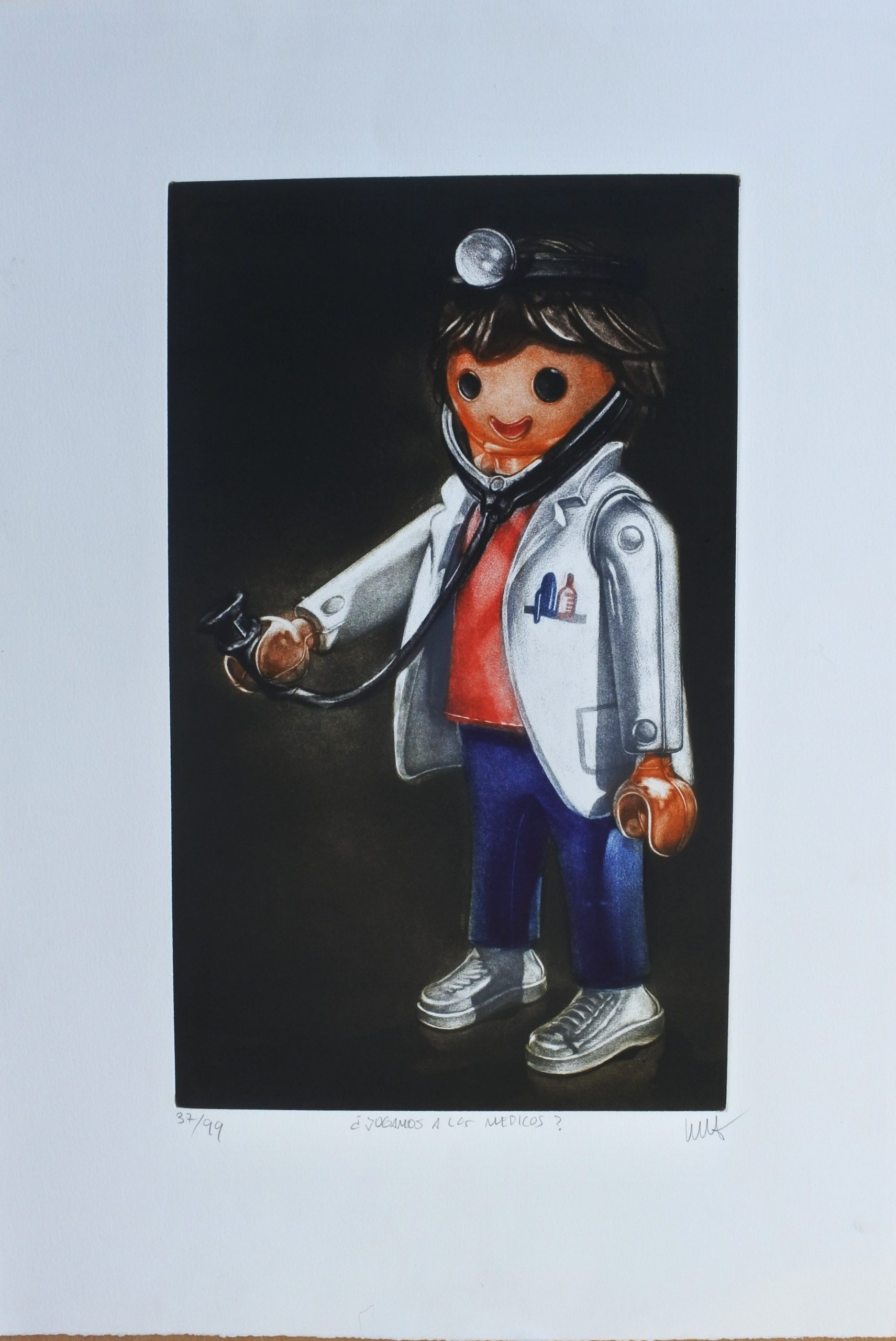 Ramiro Undabeytia, ¿Jugamos a los médicos?, Grabado mezzotinta, edición 99 ejemplares, numerado y firmado a lápiz, plancha 49×29,50 cms. y papel 72×50 cms.