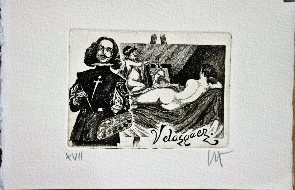Ramiro Undabeytia – «Velazquez y la Venus del espejo» grabado aguafuerte, enmarcado