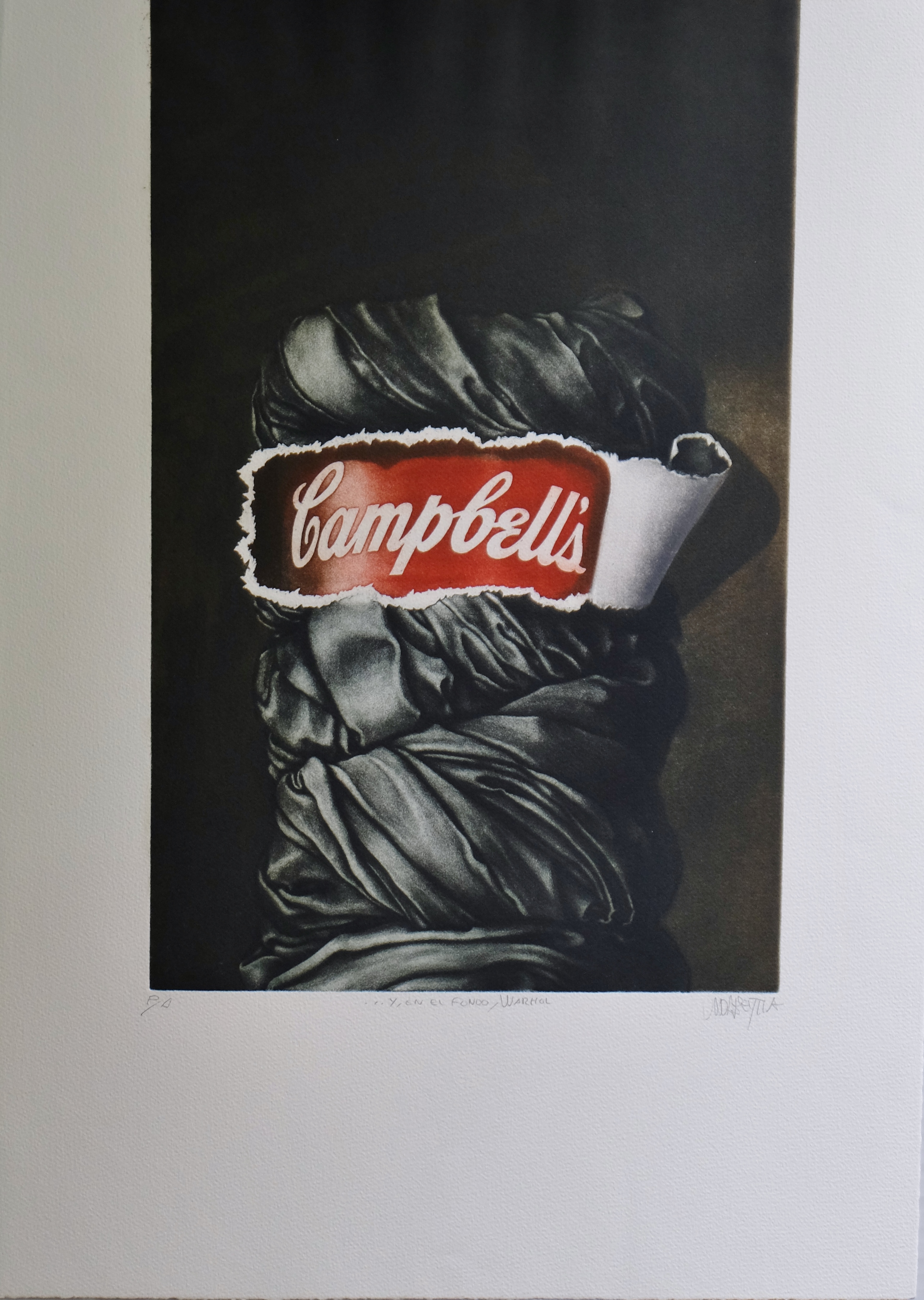 Ramiro Undabeytia, Y en el fondo Warhol, grabado mezzotinta, edición 99 ejemplares, numerado p/a titulado y firmado a lapiz, plancha 49×31 cms. y papel 65×46 cms.