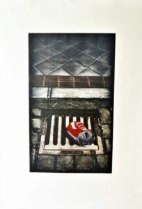 Ramiro Undabeytia – «Y mientras, rompían el cristal» grabado mezzotinta