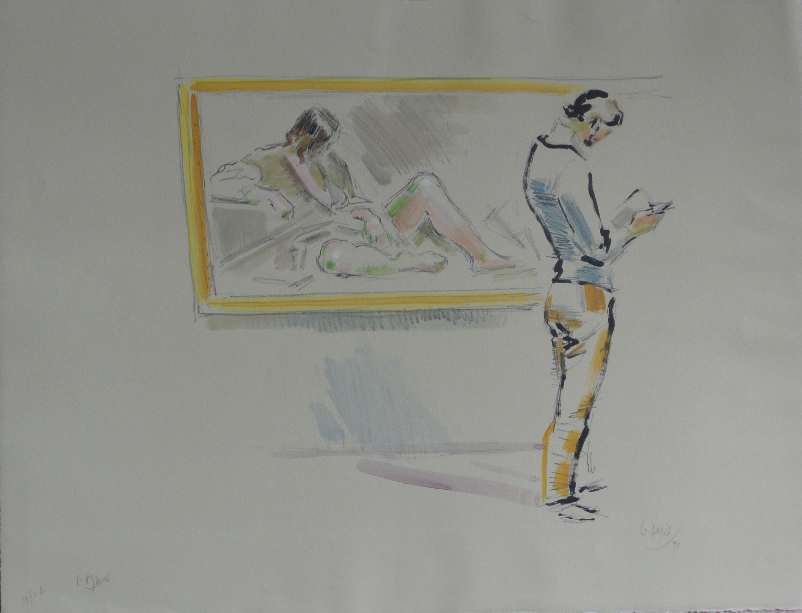Ramón Gaya – «El catálogo, en el Museo del Prado» litografía iluminada con gouasche y acuarela