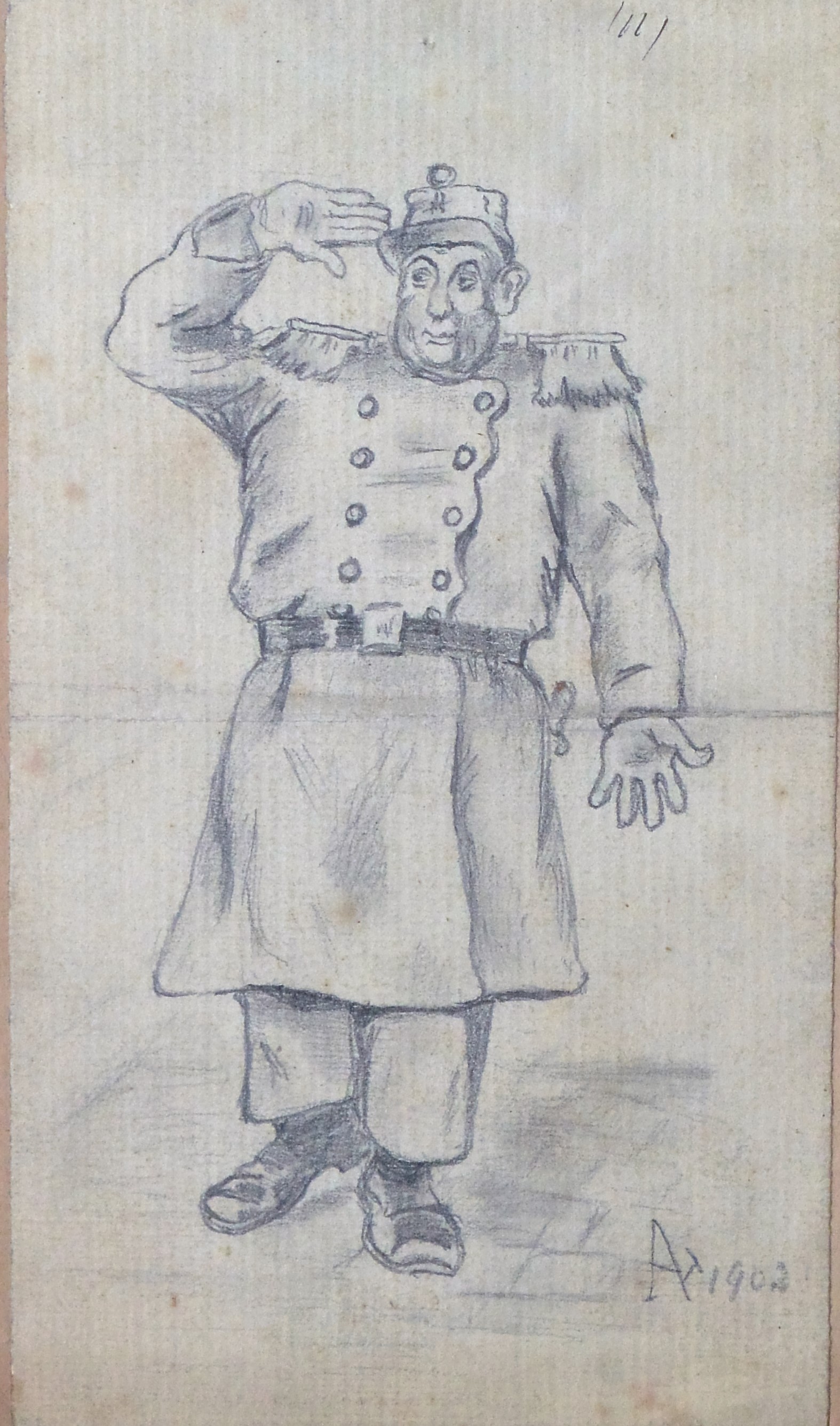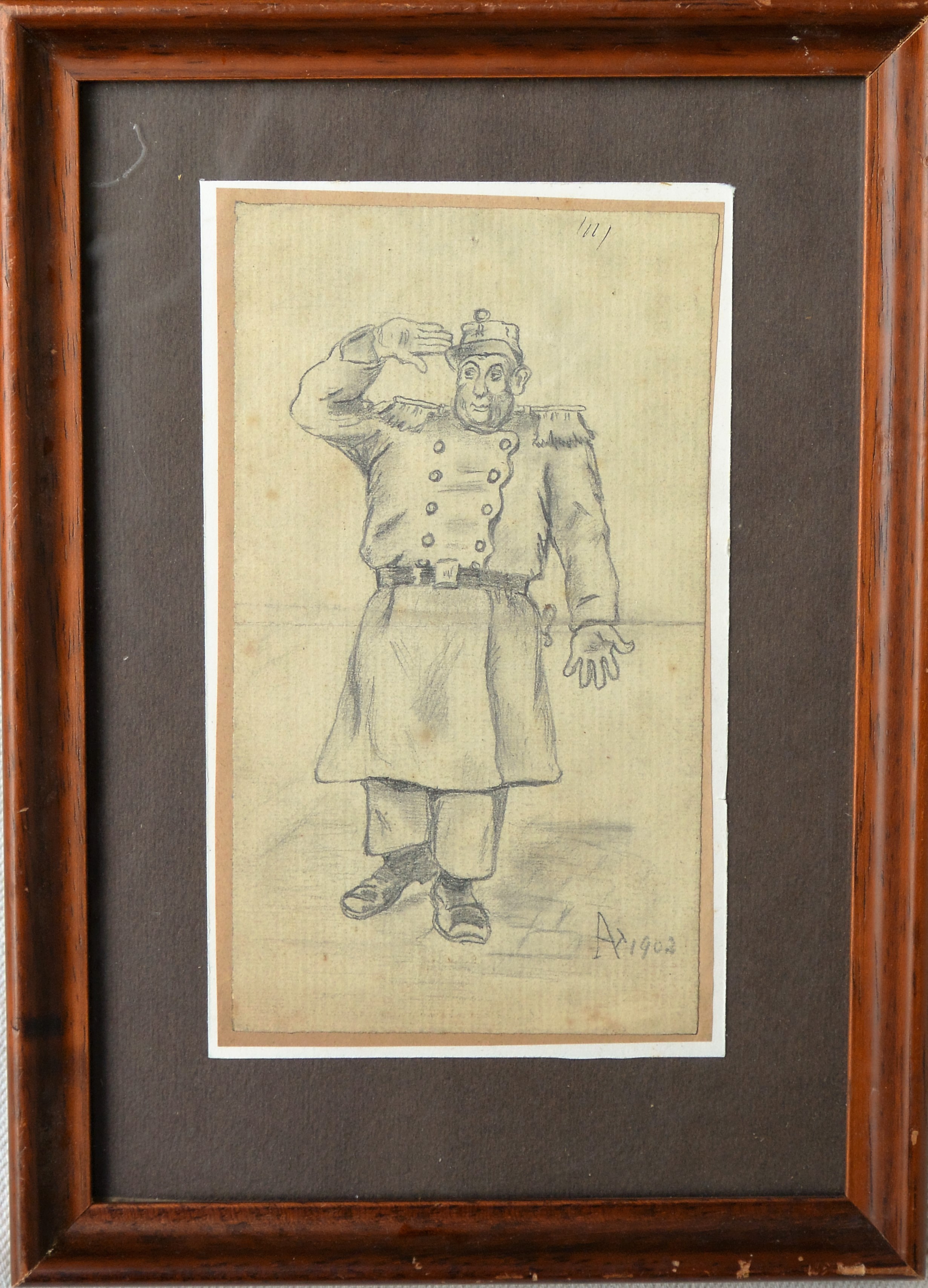 Ramón Torrado 1902, A la orden, dibujo lápiz papel, enmarcado, dibujo 16×9 cms. y marco 24×17,50 cms. Marco incluido