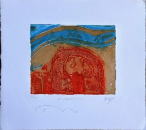 Rashid Diab, Cielo azul, grabado, edición 20 ejemplares, numerado y firmado a lápiz, plancha 13,50×16,50 cms. y papel 25,50×28 cms.