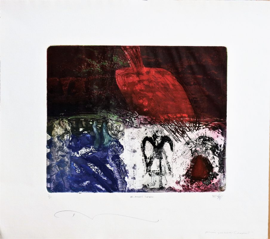 Rashid Diab, El angel negro, grabado, edición 20 ejemplares, numerado y firmado a lápiz, plancha 30,50×37,50 cms. y papel 50×56 cms.