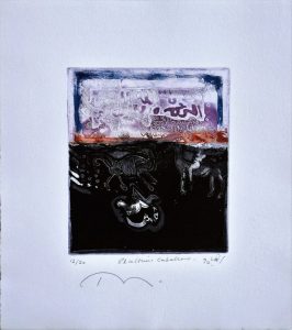 Rashid Diab, El último caballero, grabado, edición 20 ejemplares, numerado y firmado a lápiz, plancha 16×14 cms. y papel 29×25 cms.