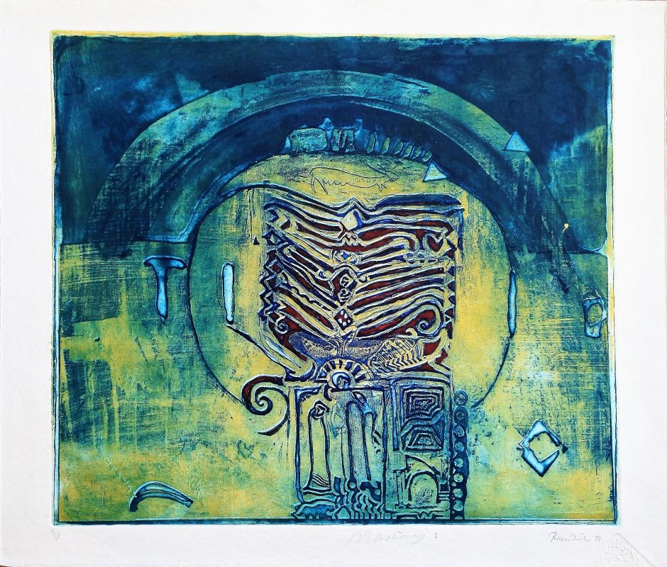 Rashid Diab, La puerta del templo, grabado, edición 20 ejemplares, numerado y firmado a lápiz, plancha 42×48 cms. y papel 50×58 cms.