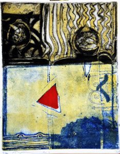 Rashid Diab, Red triangle, grabado, edición 25 ejemplares, numerado p.e. y firmado a lápiz, plancha 29×23 cms. y papel 30,50×24,50 cms.
