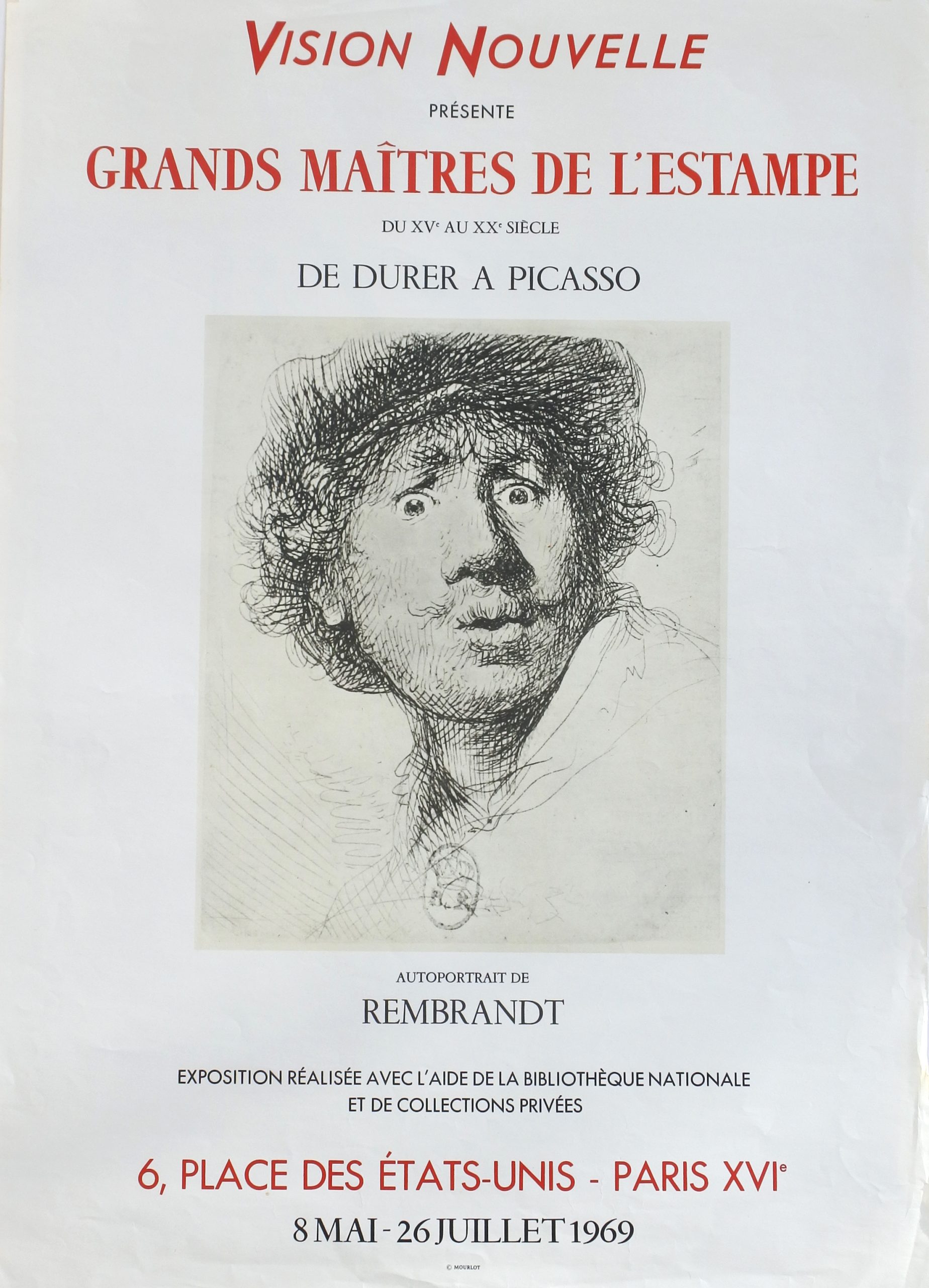 Rembrandt Van Rijn – «Autoportrait» cartel original exposición Grand Maîtres de l´Estampe en Vision Nouvelle Paris en 1969. Impreso por Mourlot