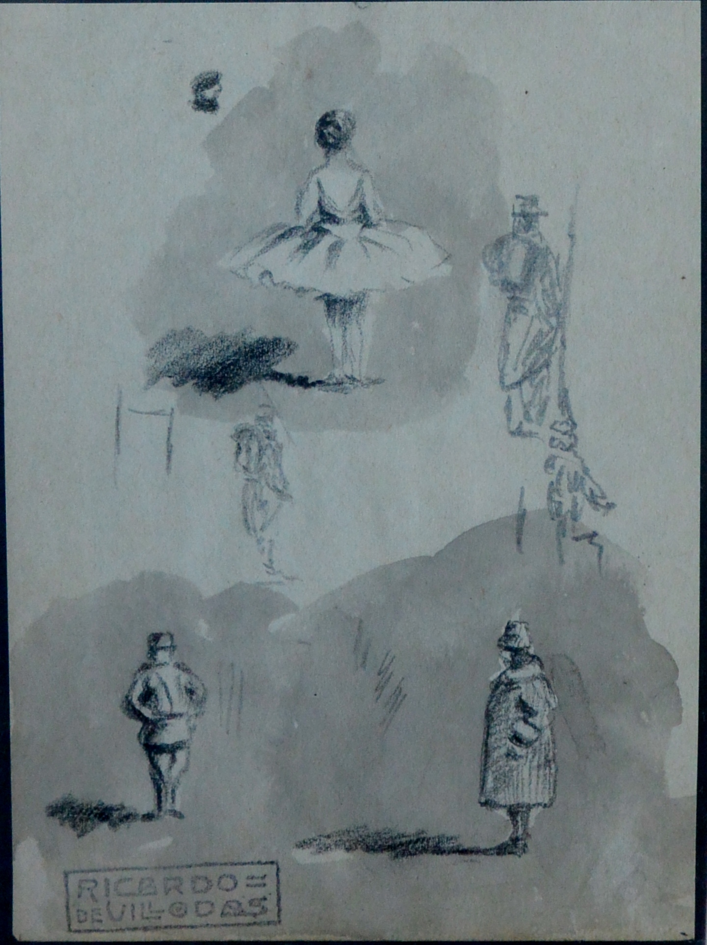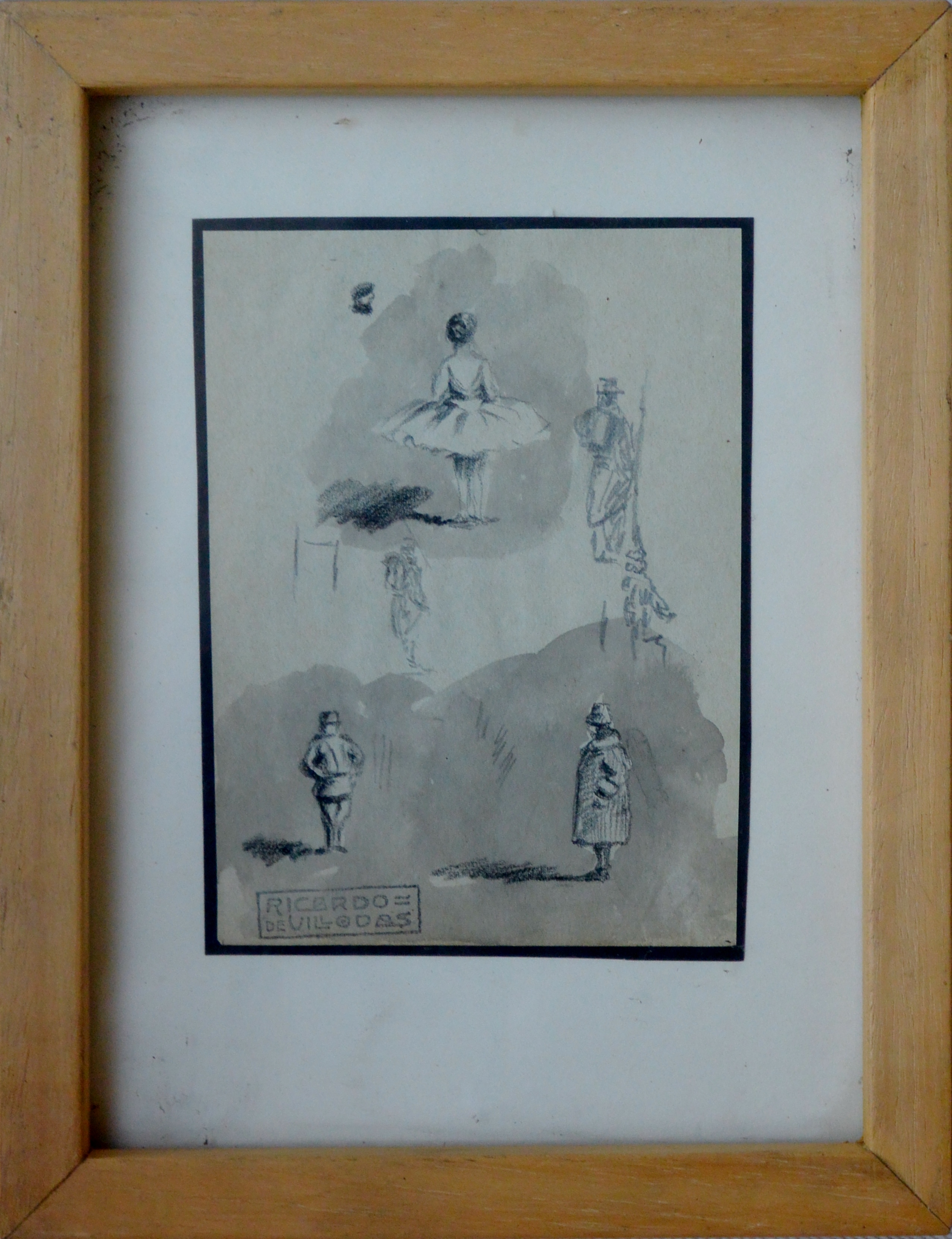 Ricardo de Villodas, Apuntes, dibujo lápiz y aguada papel, enmarcado, dibujo 12,50×9 cms. y marco 21×16 cms. Marco incluido