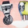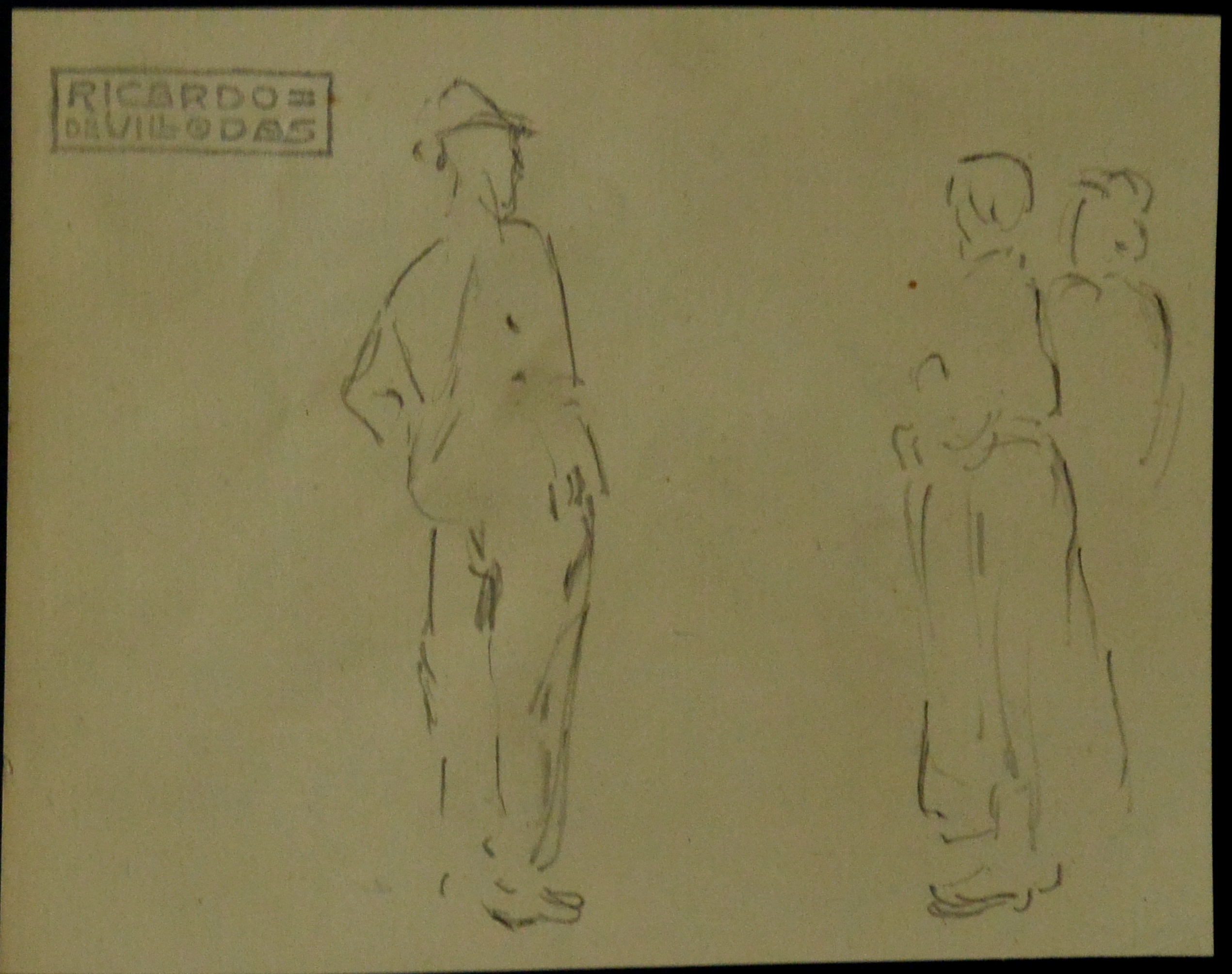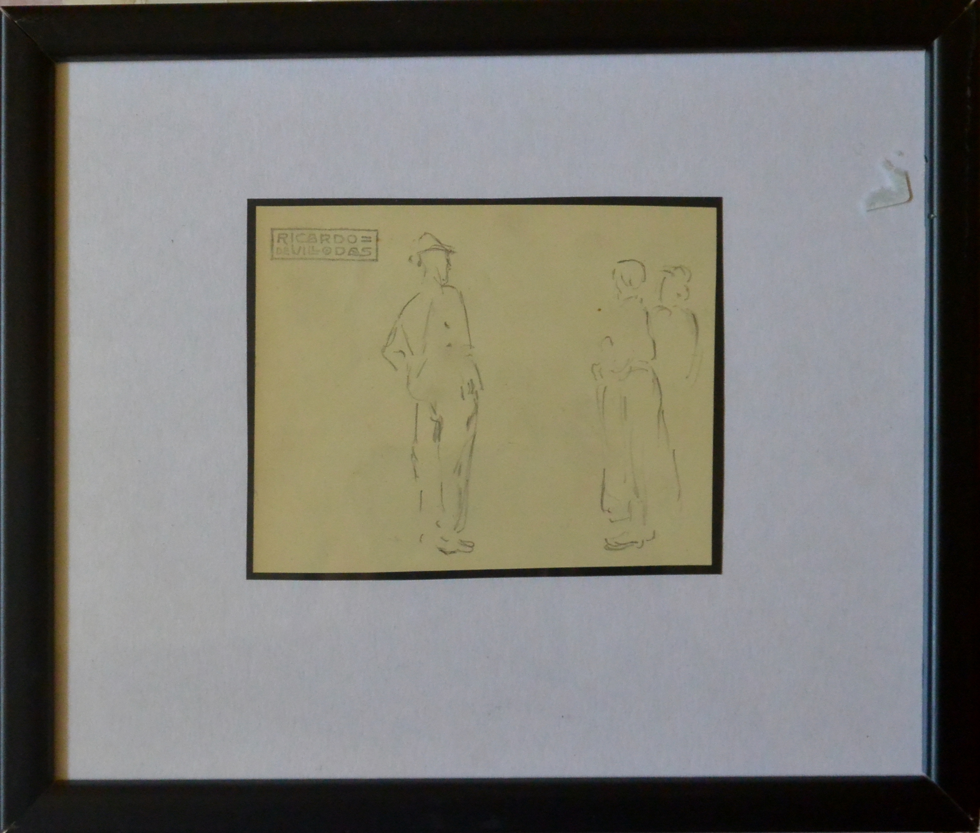 Ricardo de Villodas, boceto hombre y dos mujeres conversando, dibujo lápiz papel, enmarcado, dibujo 10×12,50 cms. y marco 22×26 cms. Marco incluido