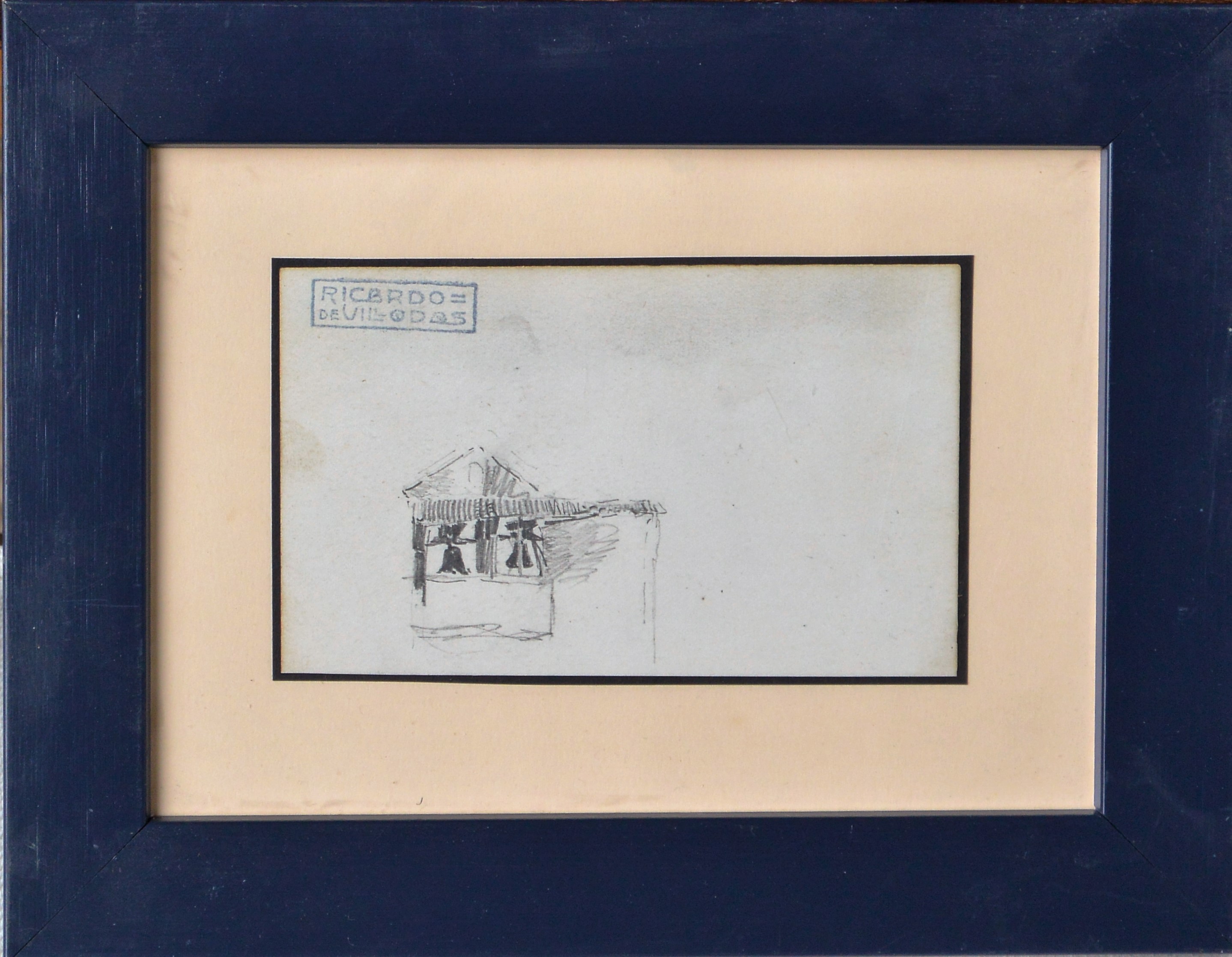 Ricardo de Villodas, Campanario, dibujo lápiz papel, enmarcado, dibujo 7,50×12 cms. y marco 16,50×21,50 cms. Marco incluido