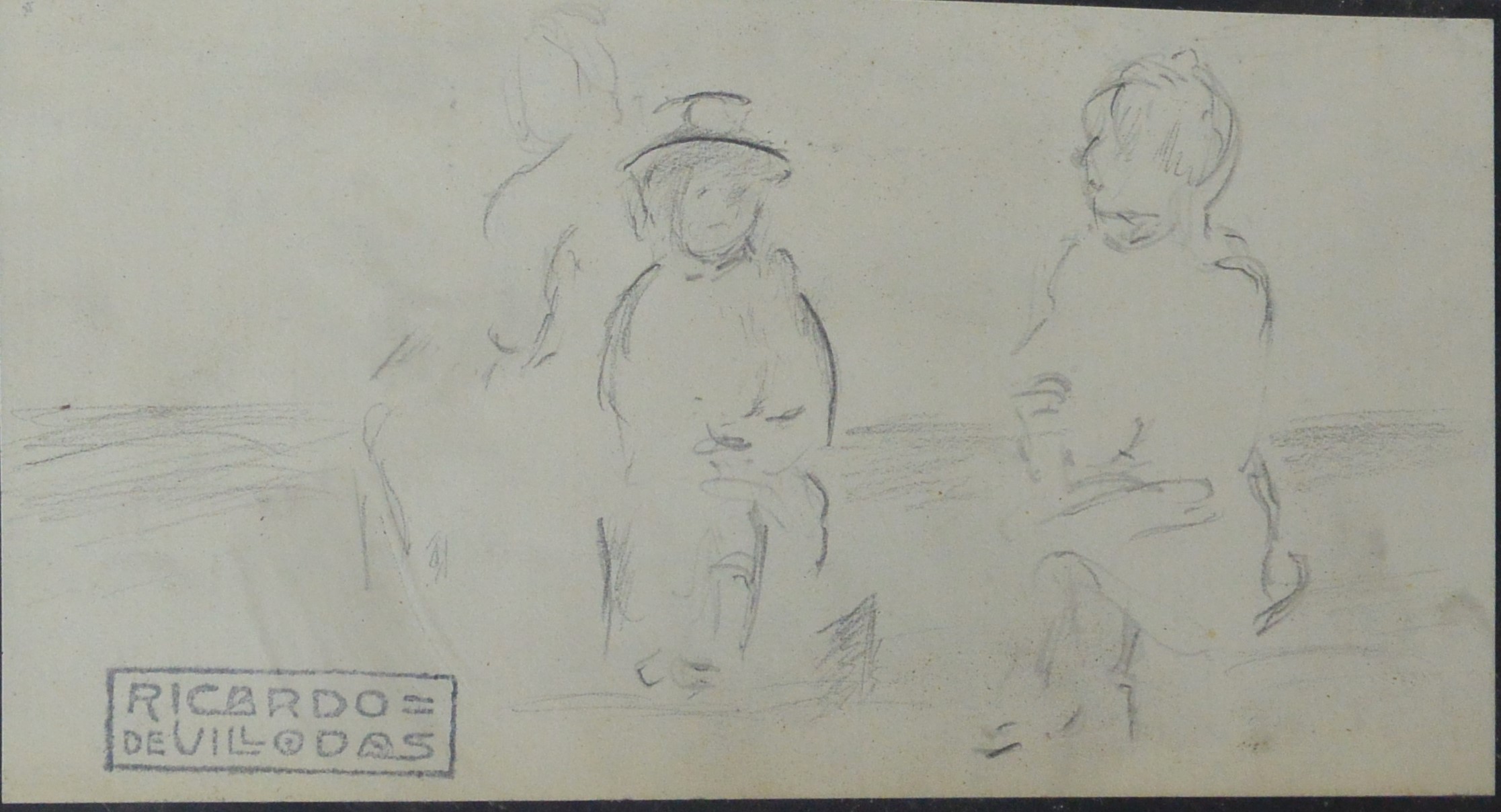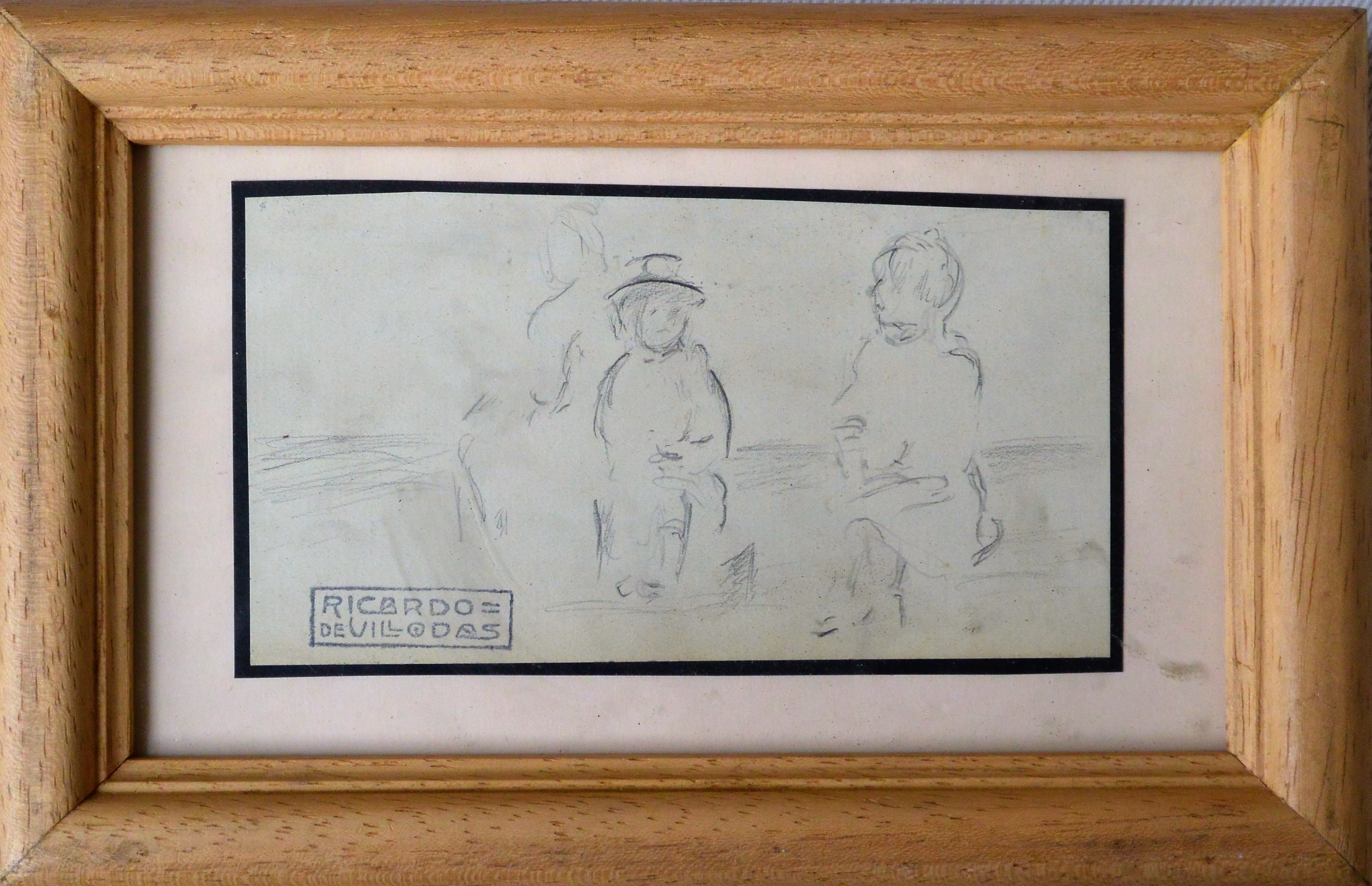 Ricardo de Villodas, Charla en el campo, dibujo lápiz papel, enmarcado, dibujo 7×12,50 cms. y marco 12,50×19,50 cms.