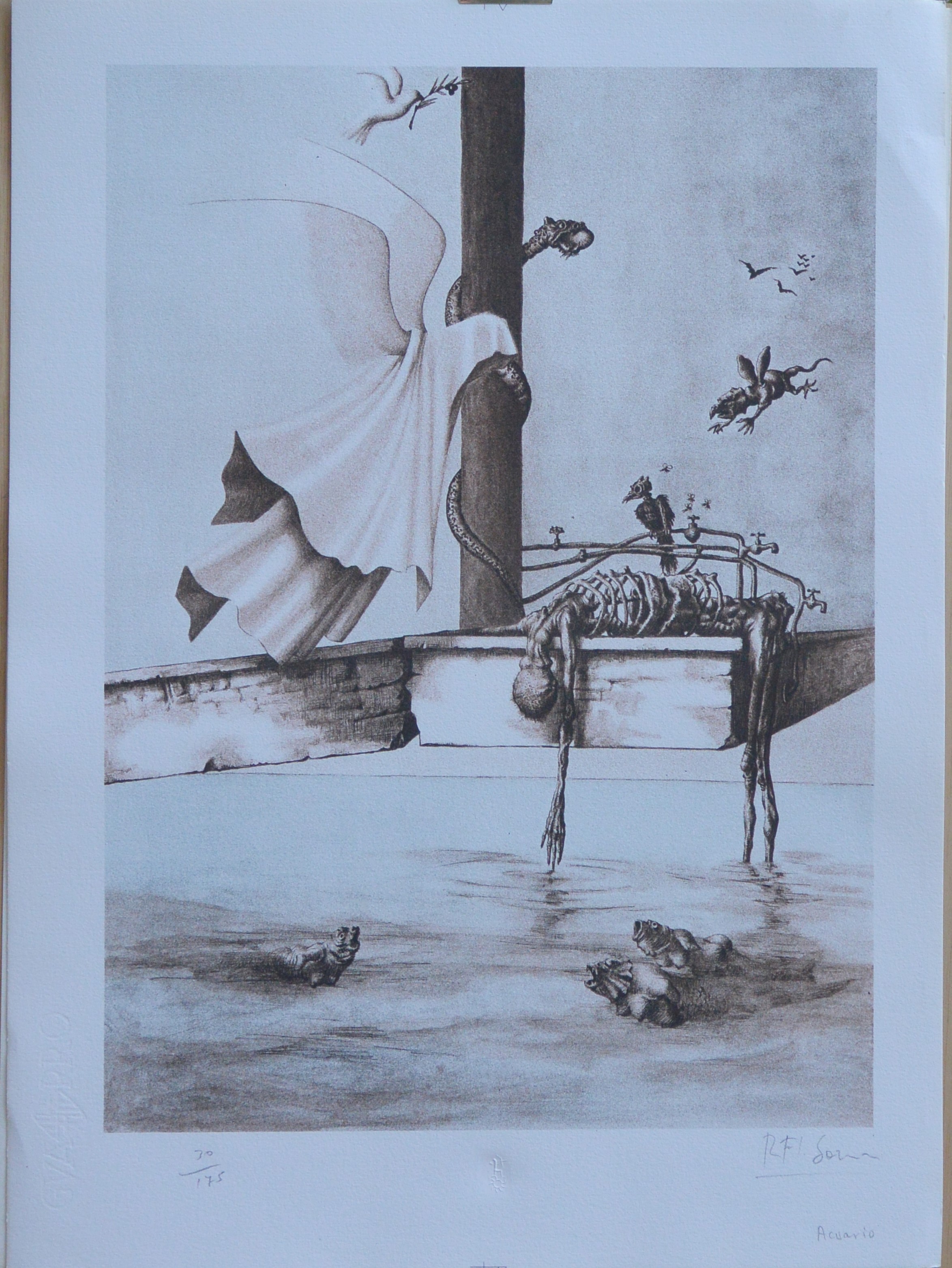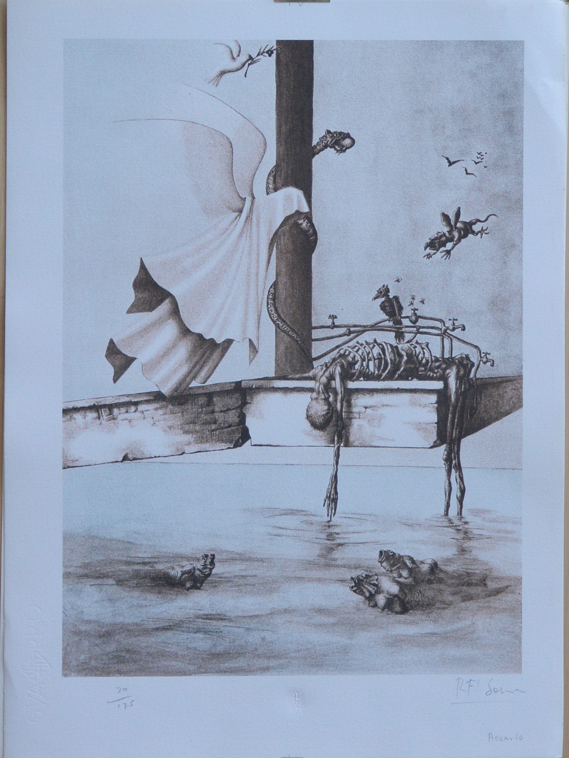 Roberto F. Soravilla, Los signos del zodiaco, Acuario, litografía, edición 170 ejemplares, numerado y firmado a lápiz, 52×38 cms.