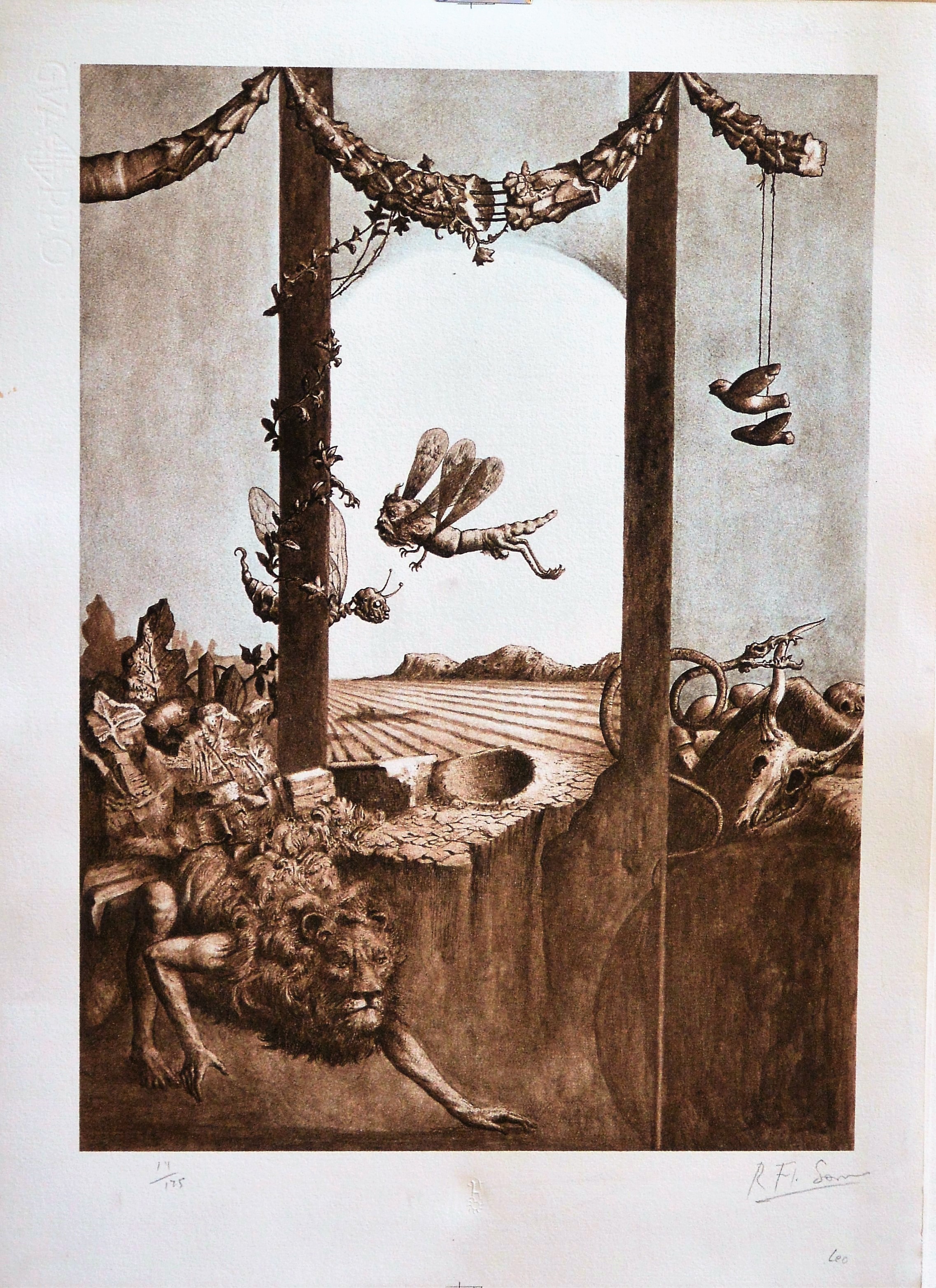 Roberto F. Soravilla, Los signos del zodiaco, Leo, litografía, edición 170 ejemplares, numerado y firmado a lápiz, 52×38 cms.