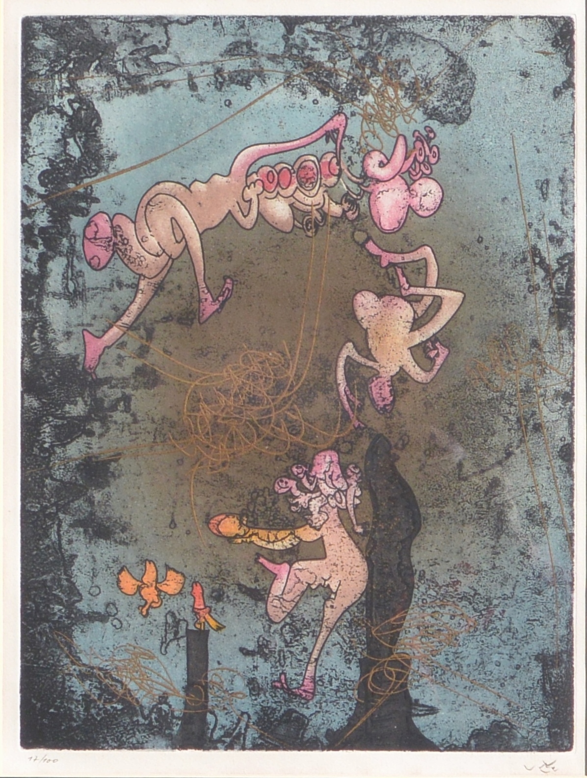 Matta Roberto, Mallarmé l´or, grabado aguafuerte y aguatinta, numerado 17/100 y firmado a lápiz, enmarcado, plancha 47×35,50 y marco 80×62 cms. Marco incluido