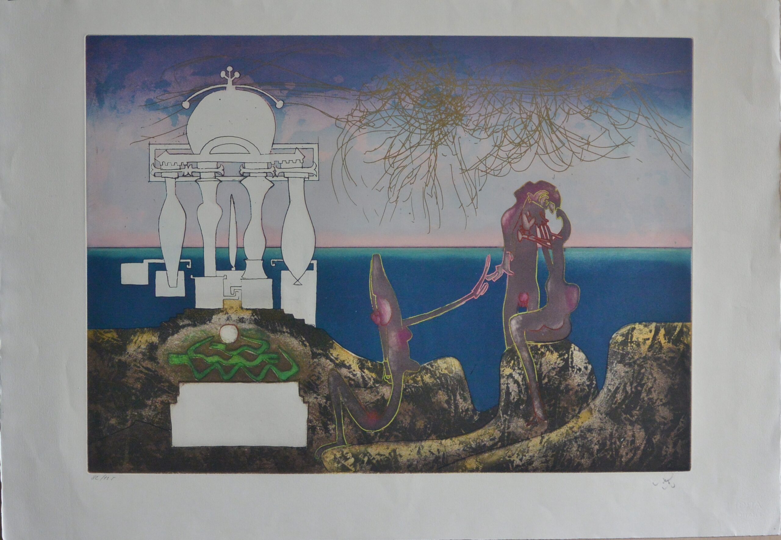 Roberto Matta, L ’ arc obscur des heures, 6 a.m. Grabado aguafuerte y aguatinta, numerado 82/125 y firmado a lápiz en 1975, papel 63×91 cms. y plancha 51×70 cms.