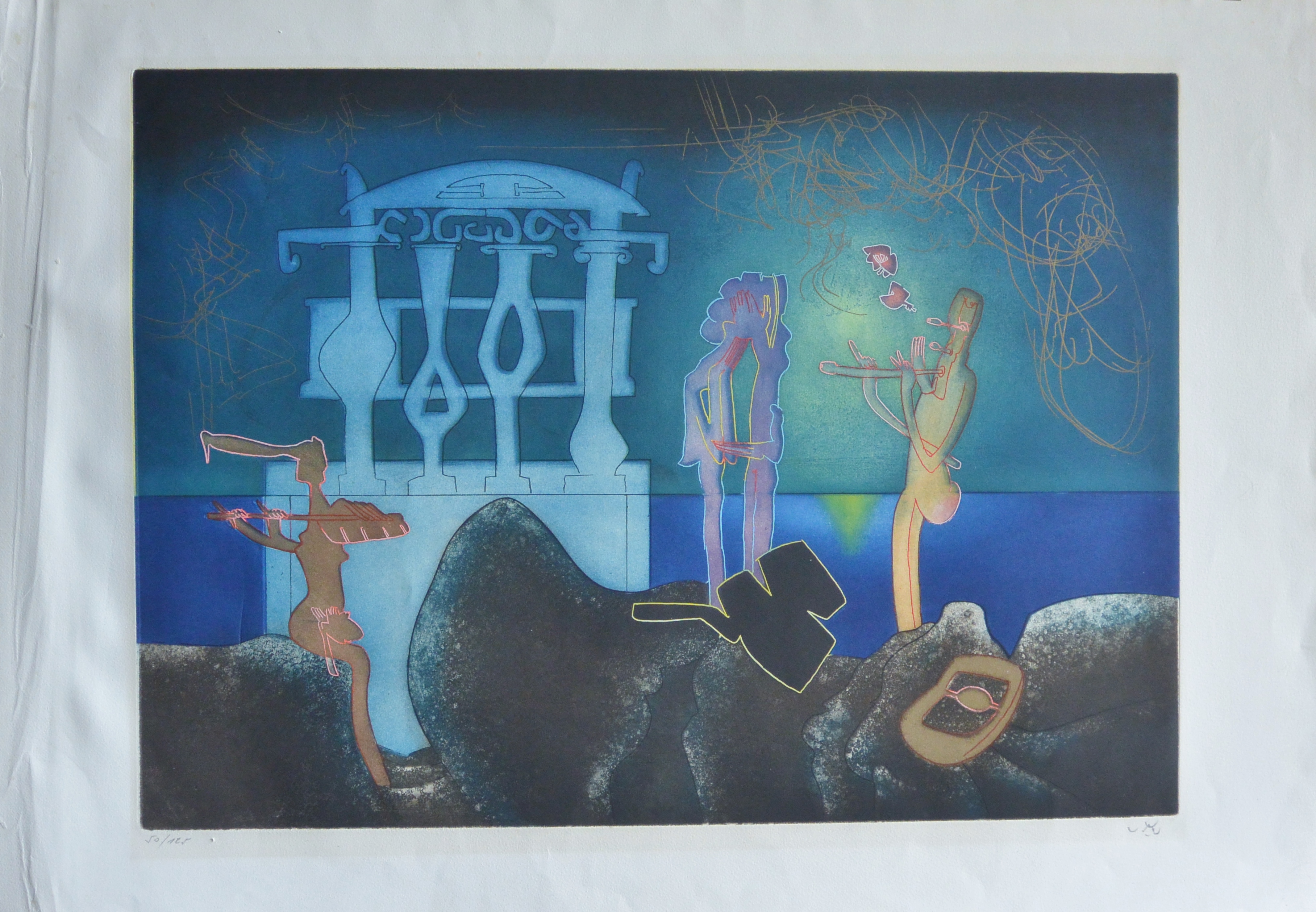 Roberto Matta, L´arc obscur des heures, grabado aguafuerte y aguatinta, numerado 50/125 y firmado a lápiz, papel 93×63,50 cms. y plancha 70×51 cms.