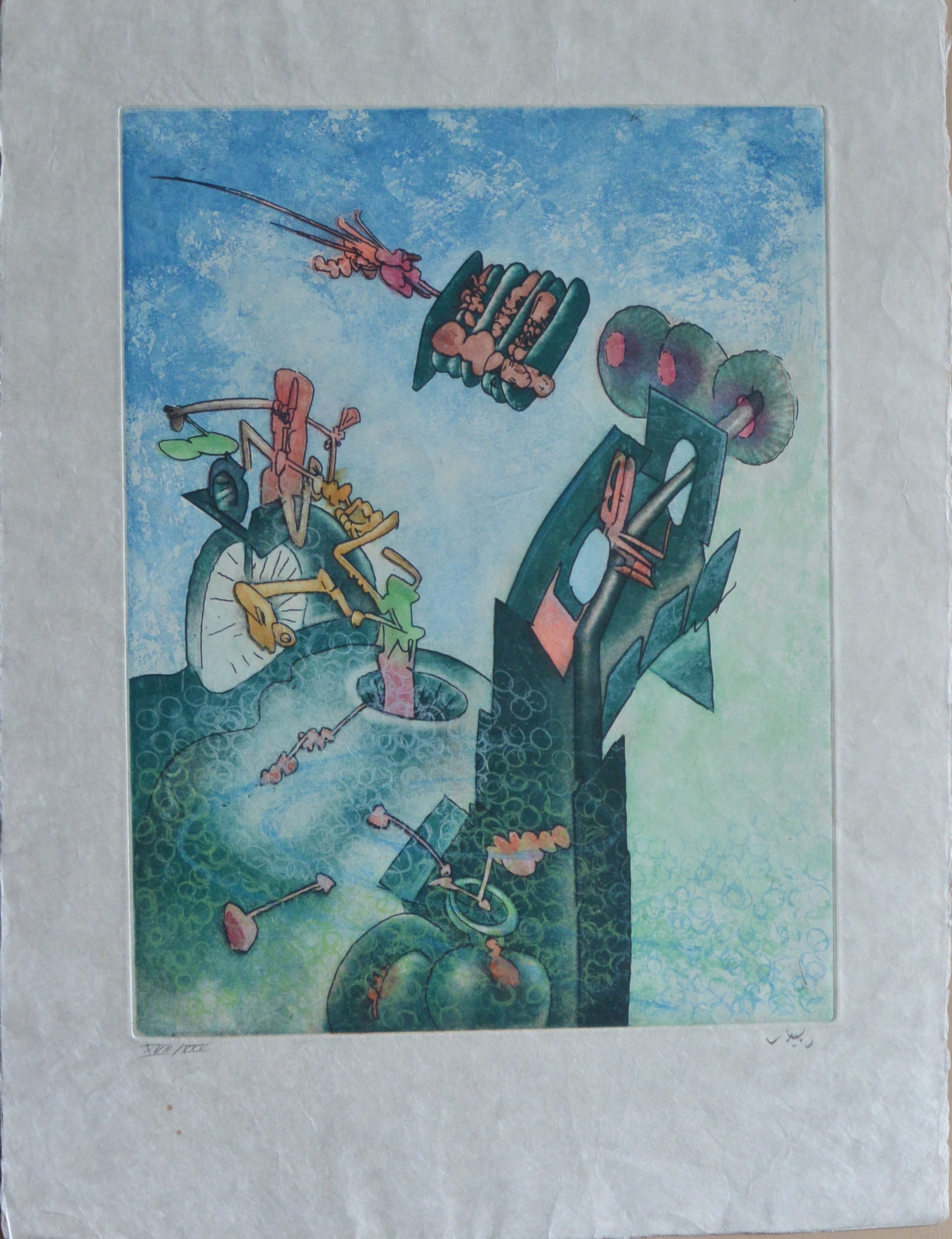 Roberto Matta, L´octr´hui Homm´mere II- L´autre, grabado aguafuerte y aguatinta, numerado XVII-XXV y firmado a lápiz, papel 67×51 cms. y plancha 49×38 cms.