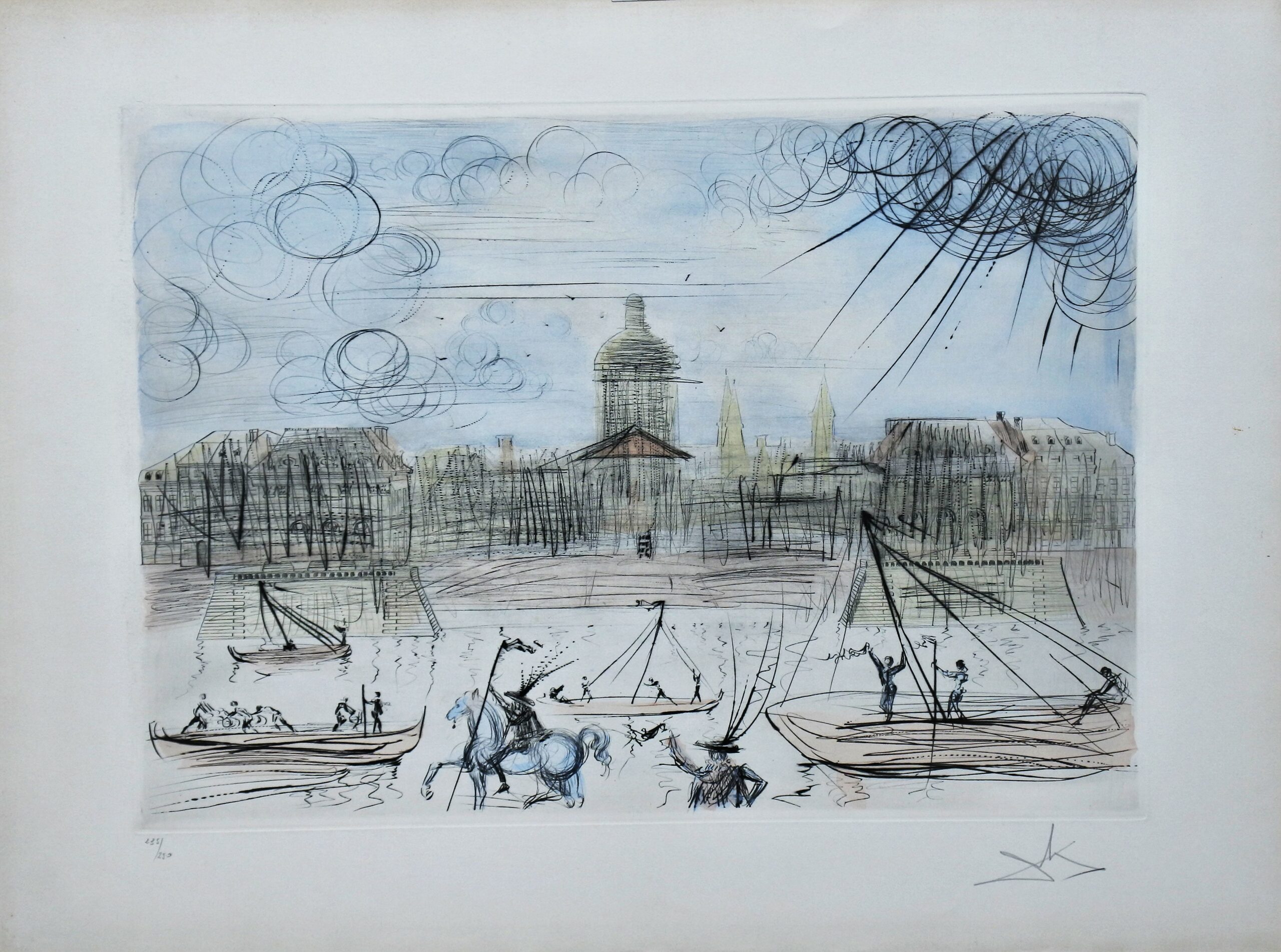 Salvador Dalí, La Academie des Beaux Arts, grabado papel Arches, edición 250 ejemplares, numerado y firmado a lápiz, plancha 43×59 y papel 57×76 cms.