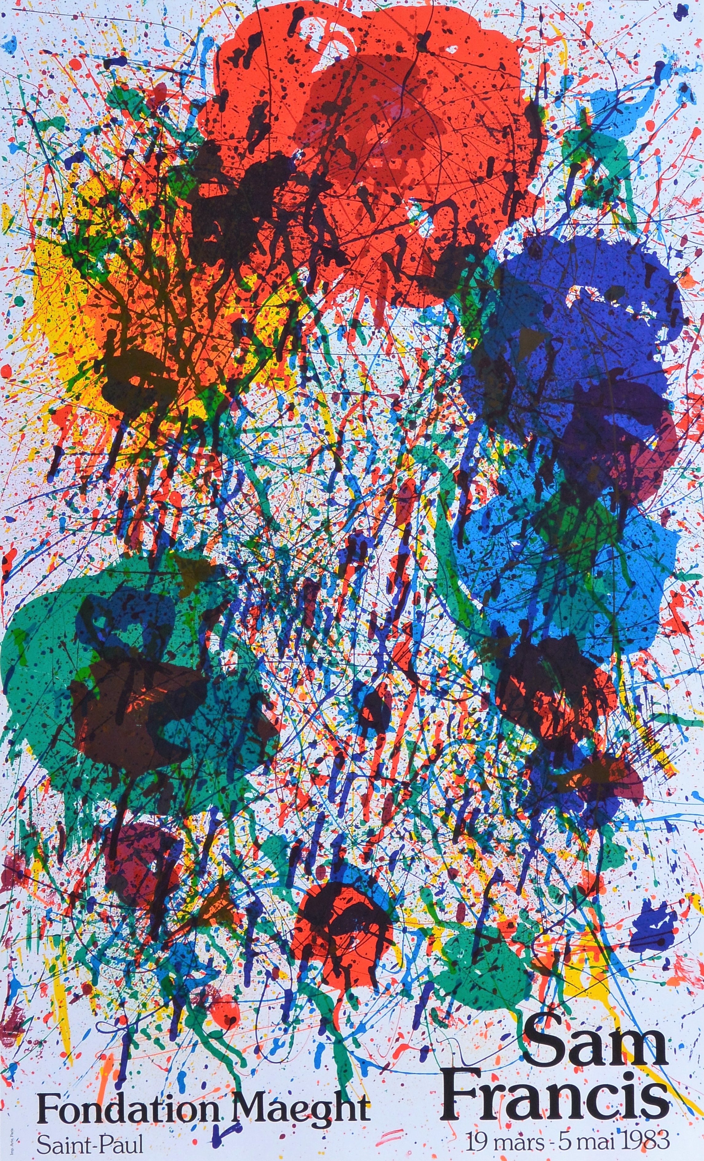 Sam Francis, Composición, cartel litográfico original exposición en la Fondation Maeght en 1983, 89×53 cms.