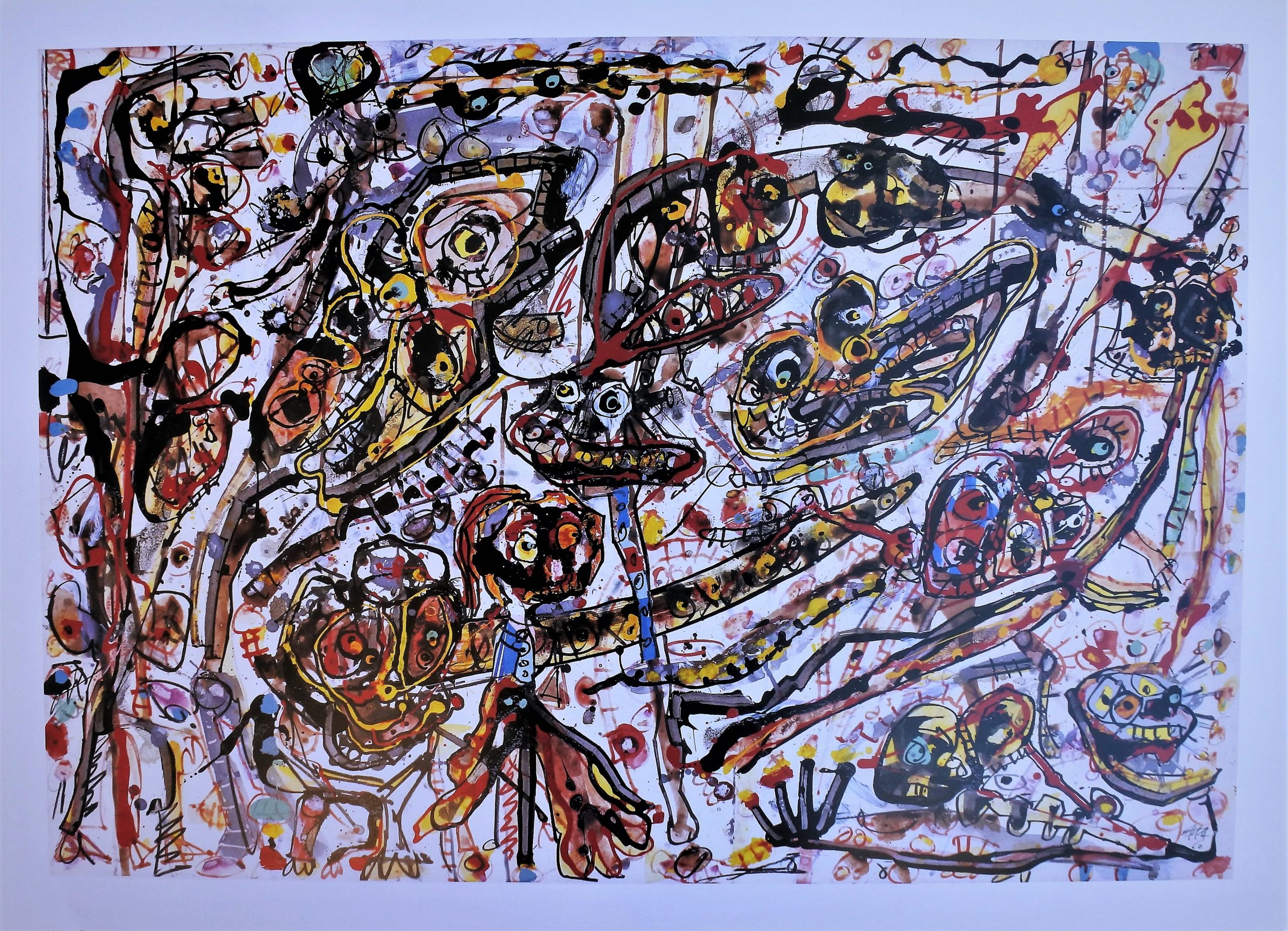 Antonio Saura, Cocktail Party 1960, cartel editado por el Museo de arte abstracto de Cuenca, 60×83 cms