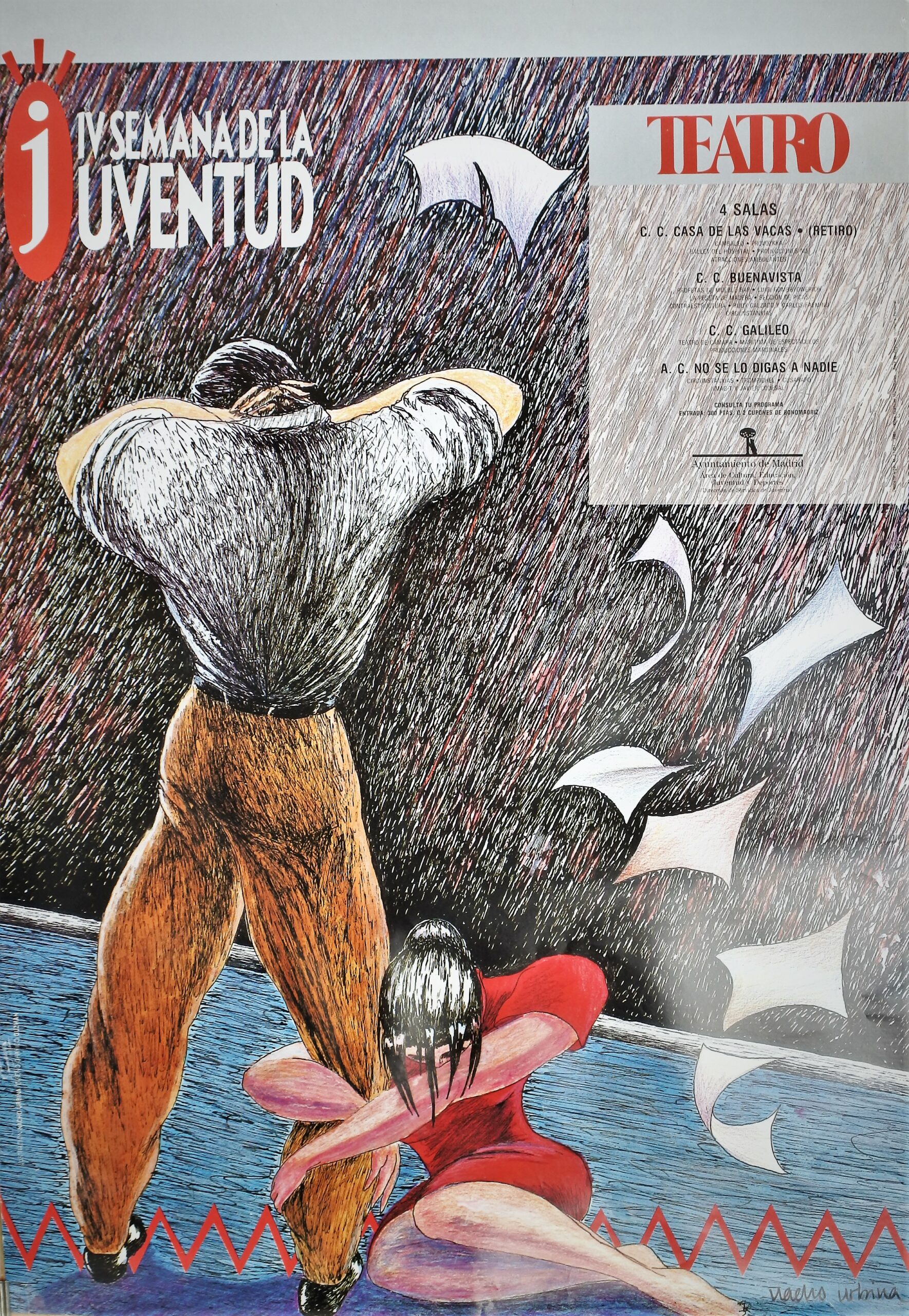 Semana de la Juventud, Teatro, ilustración de Nacho Urbina, cartel original Ayuntamiento de Madrid en 1987, 69×48 cms.