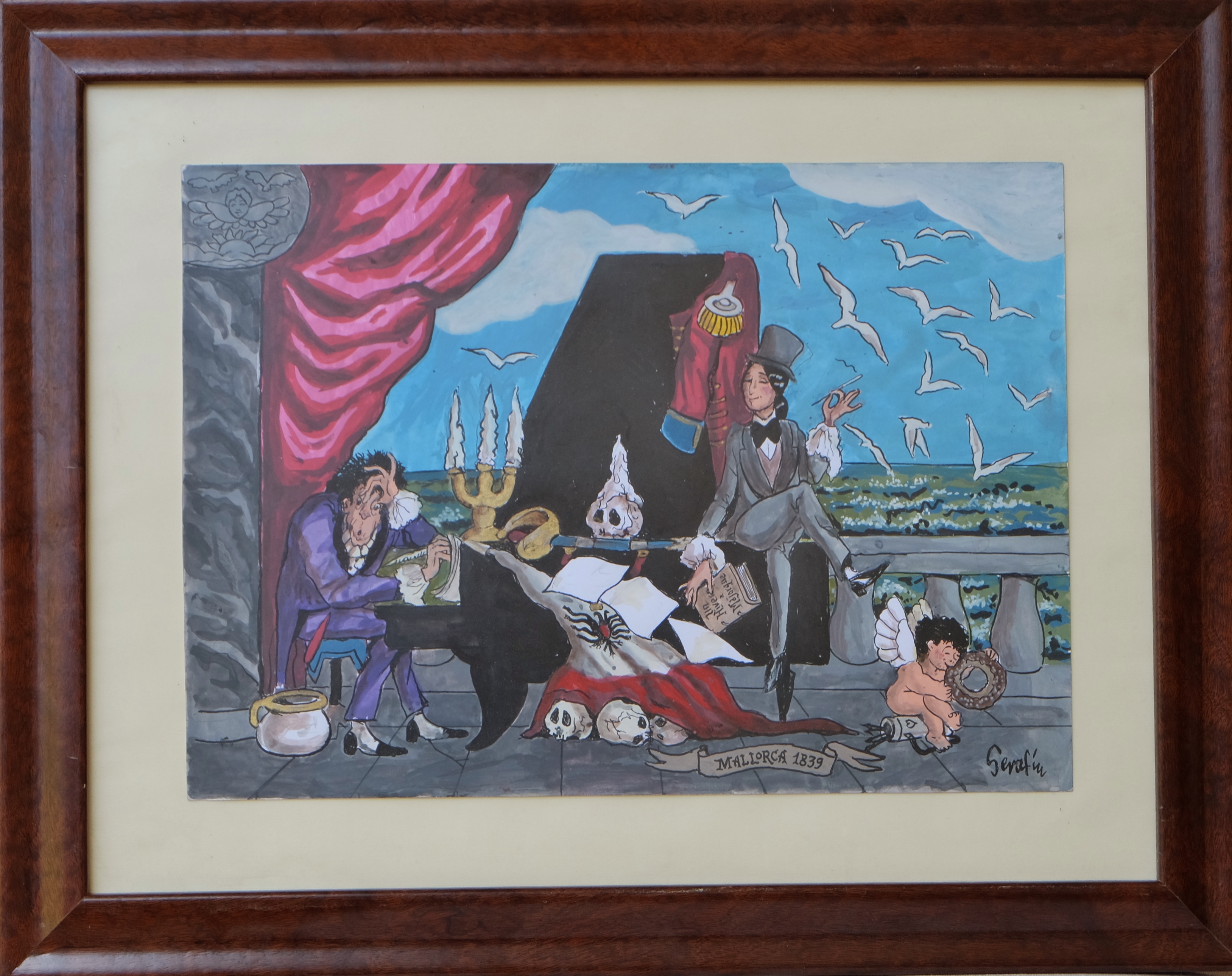Serafín, Chopin y George Sand, acuarela cartulina, enmarcado, 32×45 cms. y con marco 50×64 cms. Marco incluido