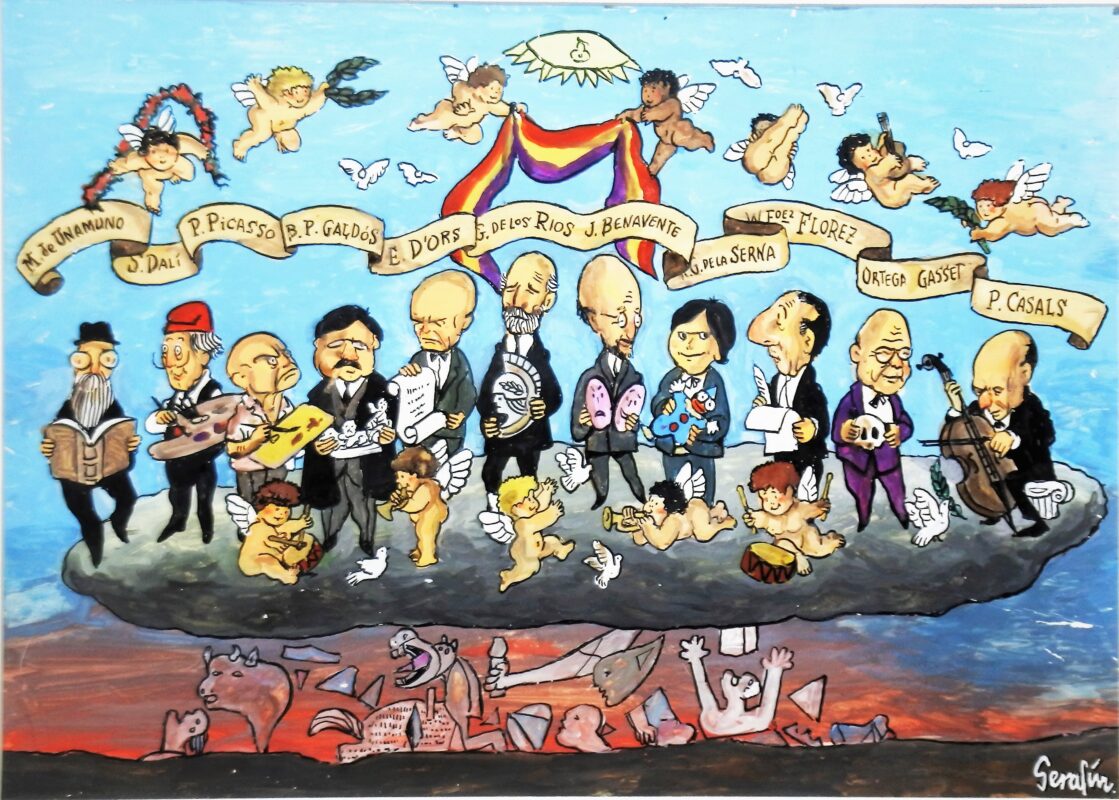 Serafín Rojo, Artistas de la República II, dibujo acuarela papel, enmarcado, dibujo 32×45 cms. y marco 44×57 cms.