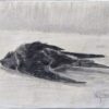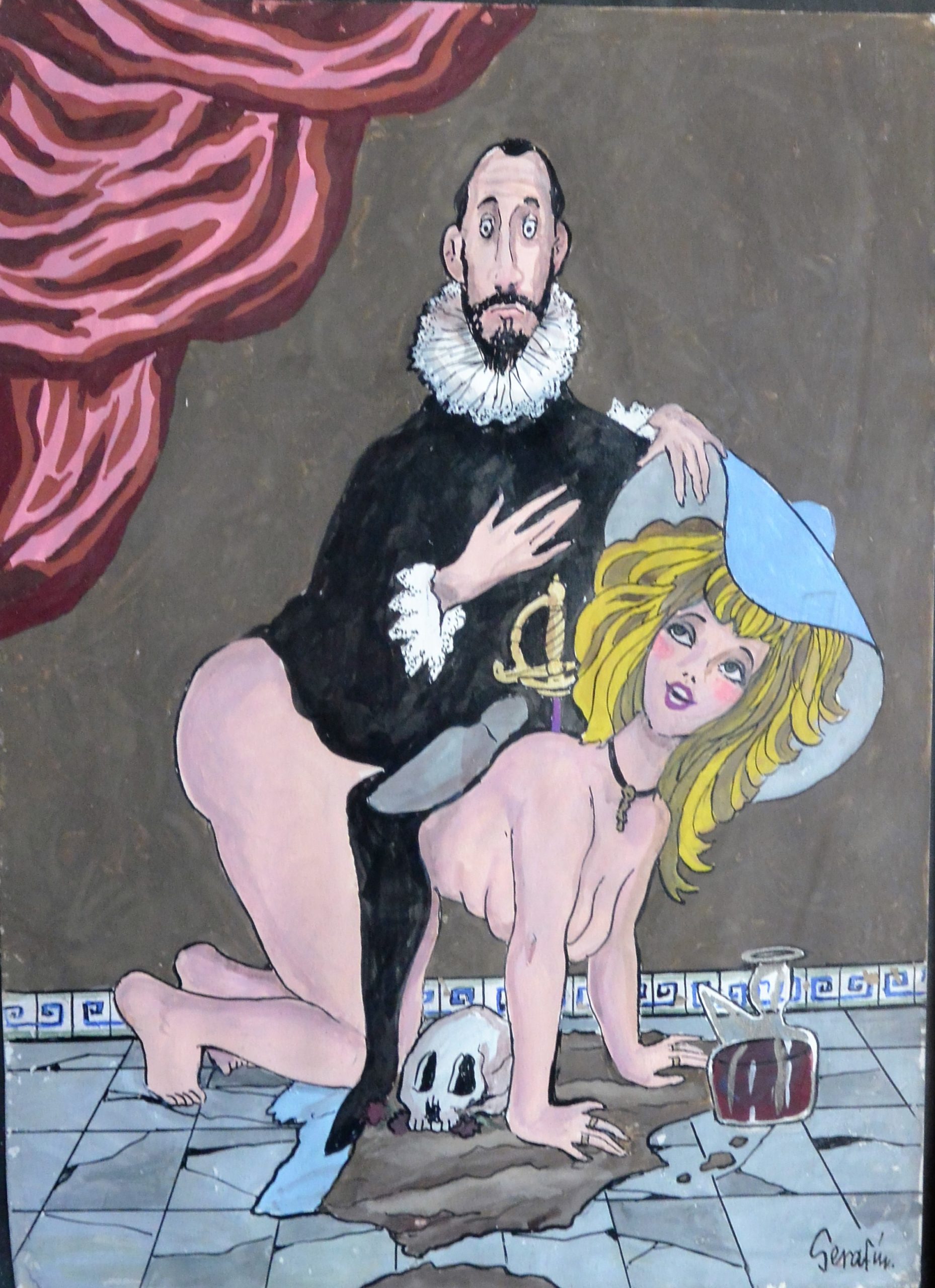 Serafín Rojo, Caballero de la Mano en el pecho, dibujo acuarela papel, enmarcado, dibujo 45×33 cms. y marco 53×39 cms.