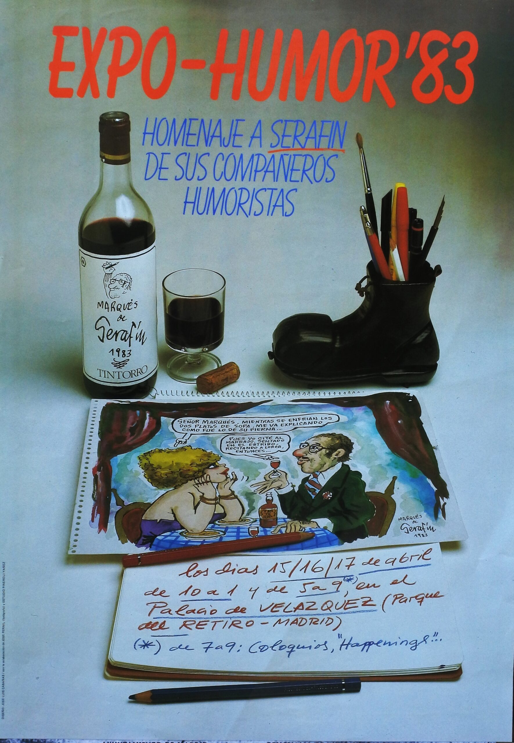 Serafín Rojo – «Expo Humor 83» cartel original homenaje a Serafín de sus compañeros humoristas en el Palacio de Velazquez Madrid en 1983