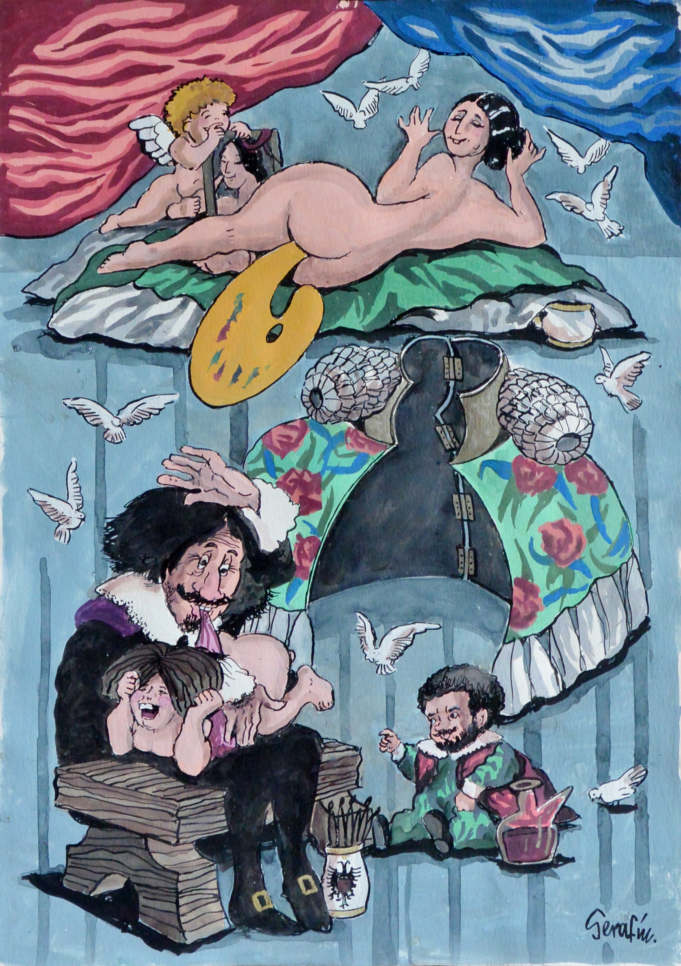 Serafín Rojo, La Venus del espejo Velazquez, acuarela cartulina, 47×33 cms.