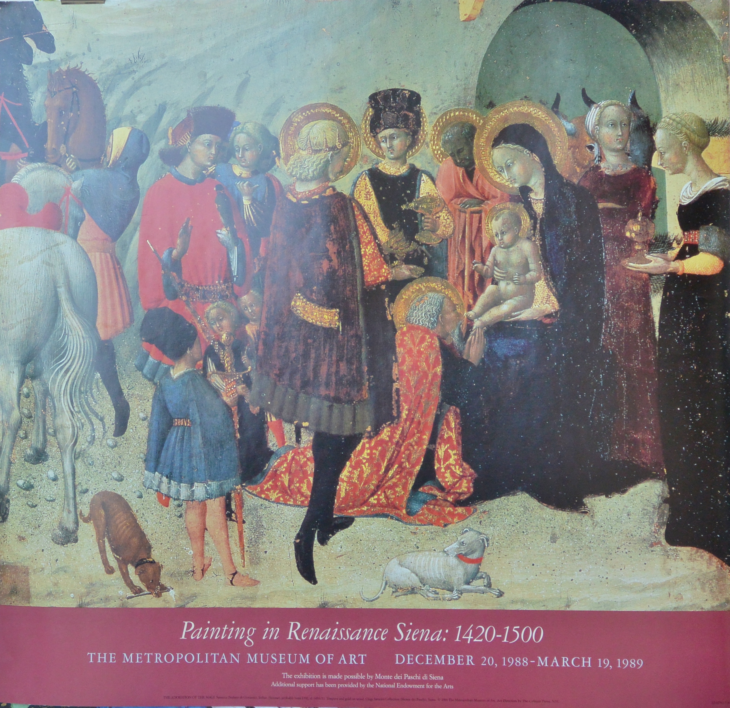 Stefano Di Giovanni Sassetta, Adoration of the Magi, Cartel original exposición Painting Renaissance en el Metropolitan Museum en 1989, 61×63 cms.