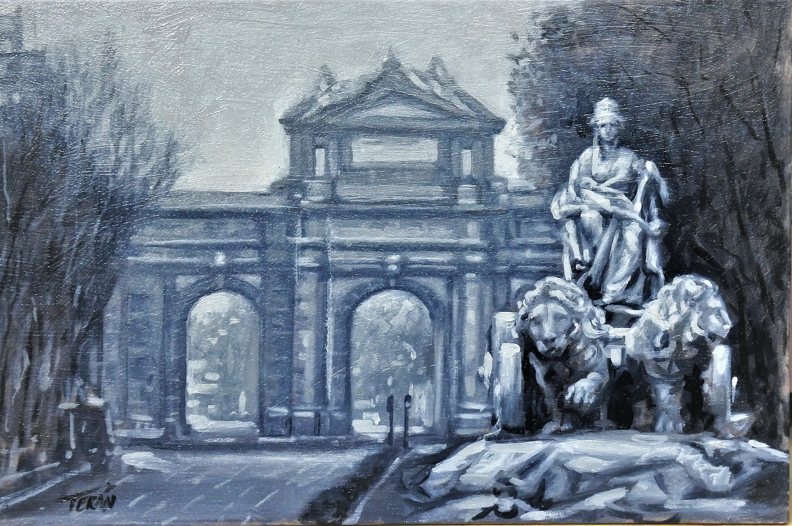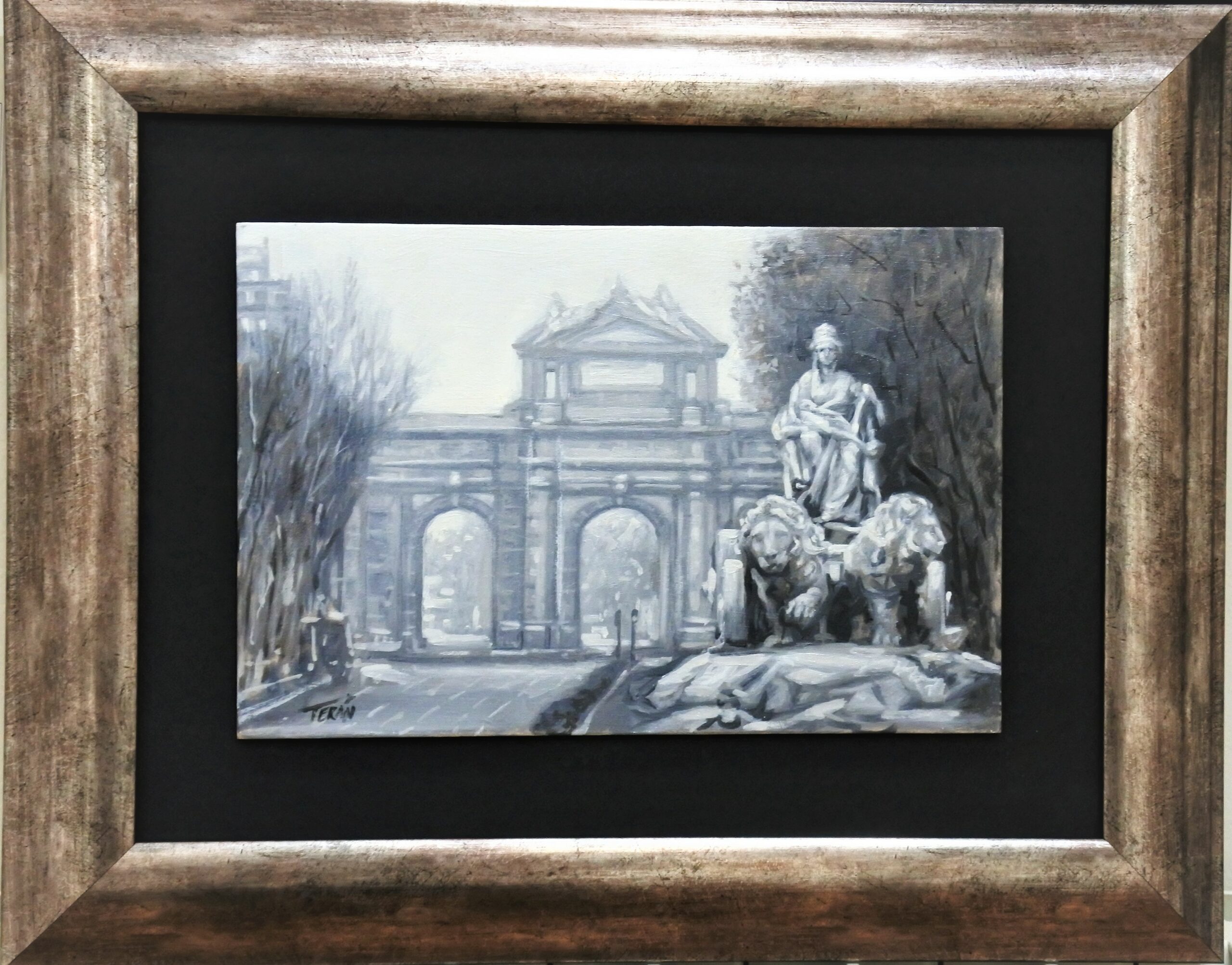 Manuel Terán, Madrid, Símbolos de la ciudad, Cibeles y Puerta de Alcalá, pintura oleo sobre tabla, enmarcado, pintura 20×30 cms. y marco 38×48 cms. (7)