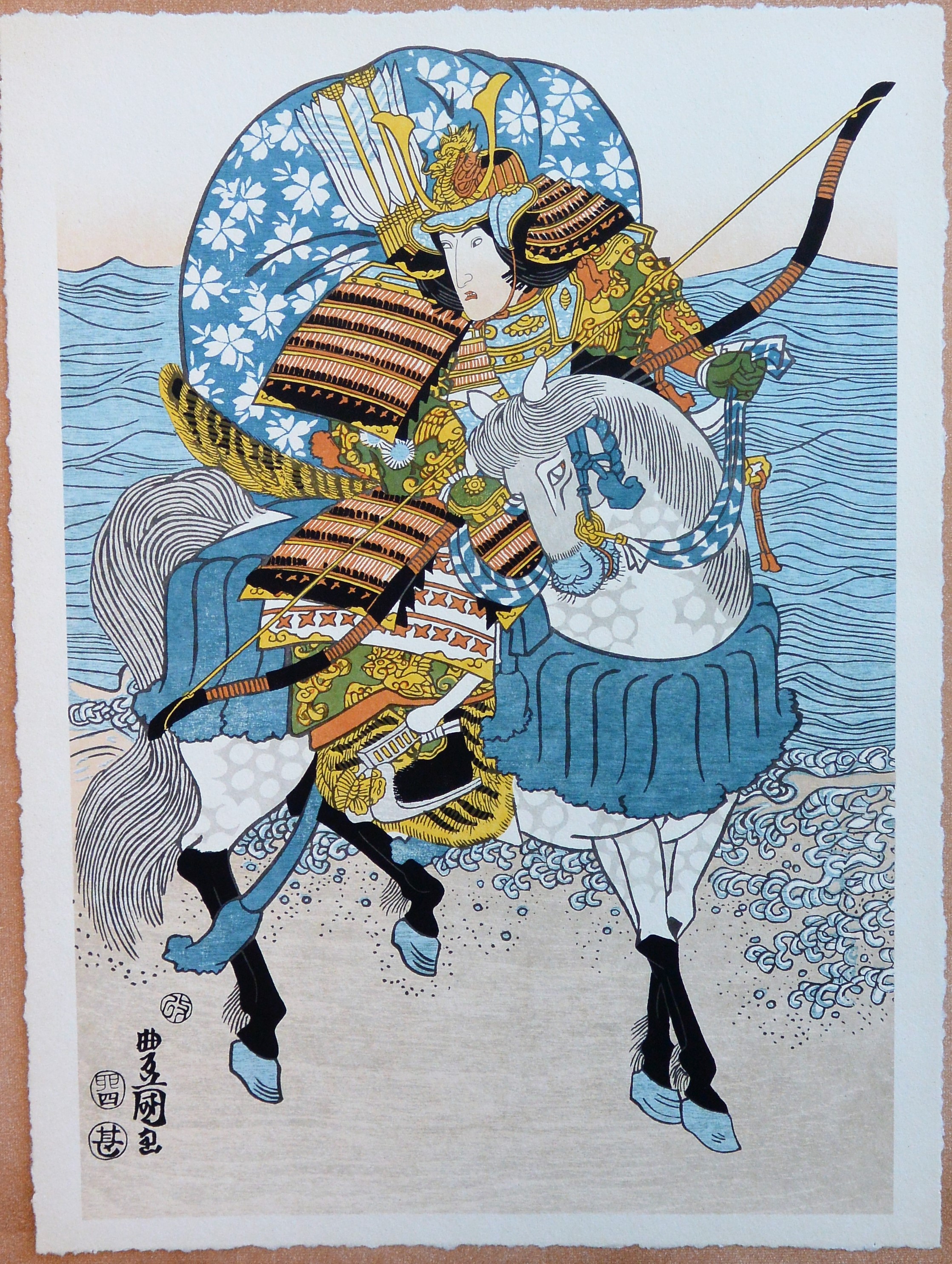 Toyokuni, Samurai, Xilografía original color, edición de 298 ejemplares, 51×38 cms.