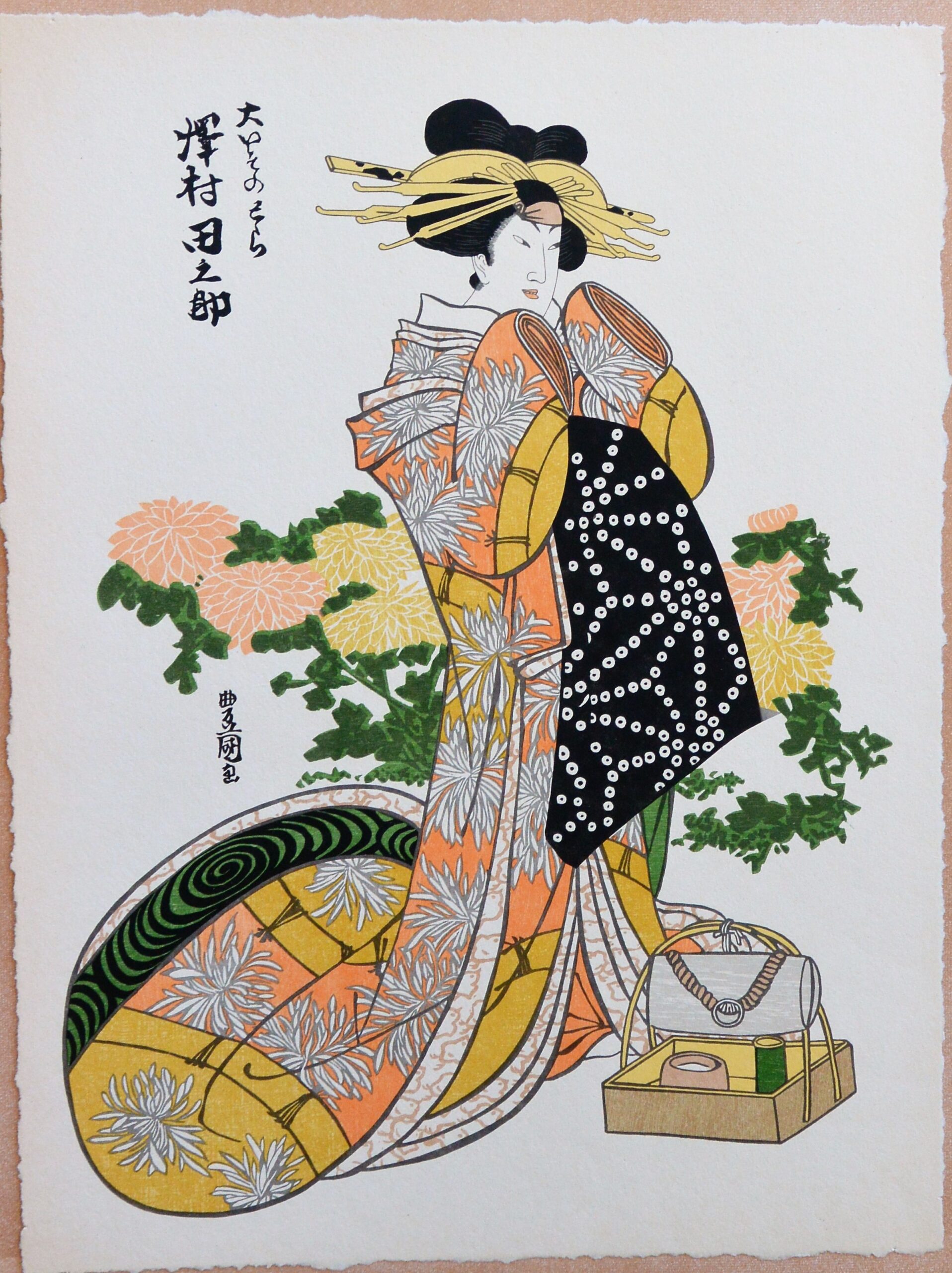 Toyokuni, Tanosuke Sawamura vestida para representar a Tora de Ohiso, Xilografía original color, edición de 298 ejemplares, 51×38 cms.