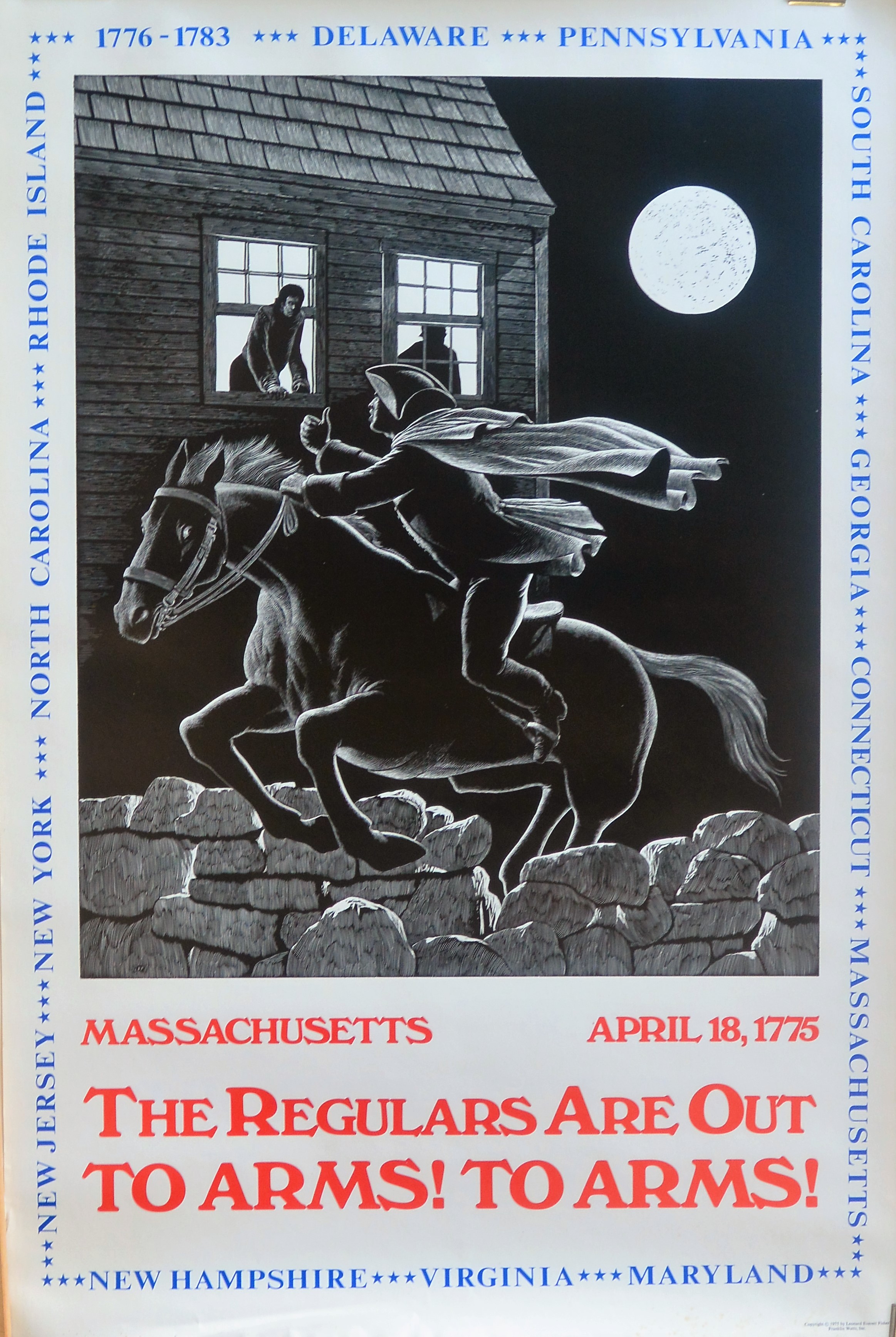 USA, Massachusetts, April 18 1775, The regulars are out, cartel original conmemorativo 200 años independencia EEUU, 91×61 cms.
